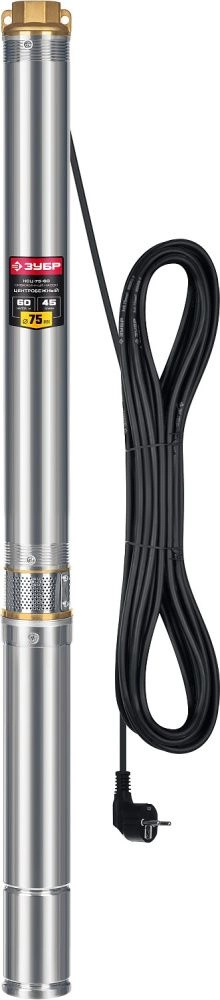 ПроизводителиНасос скважинный, центробежный, для чистой воды, напор 60м, 800Вт, 45 л/мин (НСЦ-75-60) ЗУБР