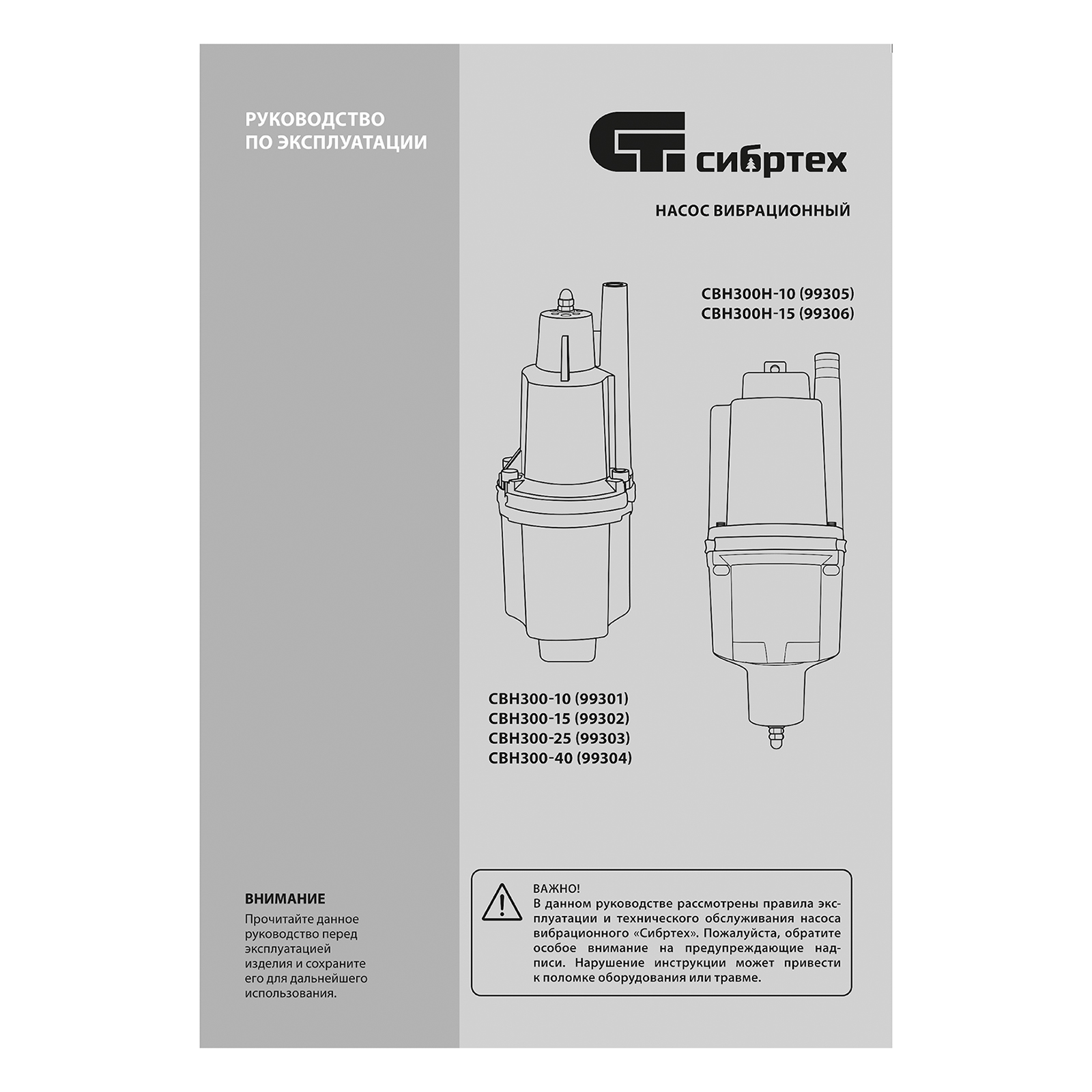 ПроизводителиНасос вибрационный СВН300Н-10, нижний забор, 300 Вт, напор 75 м, 1200 л/ч, кабель 10 м Сибртех