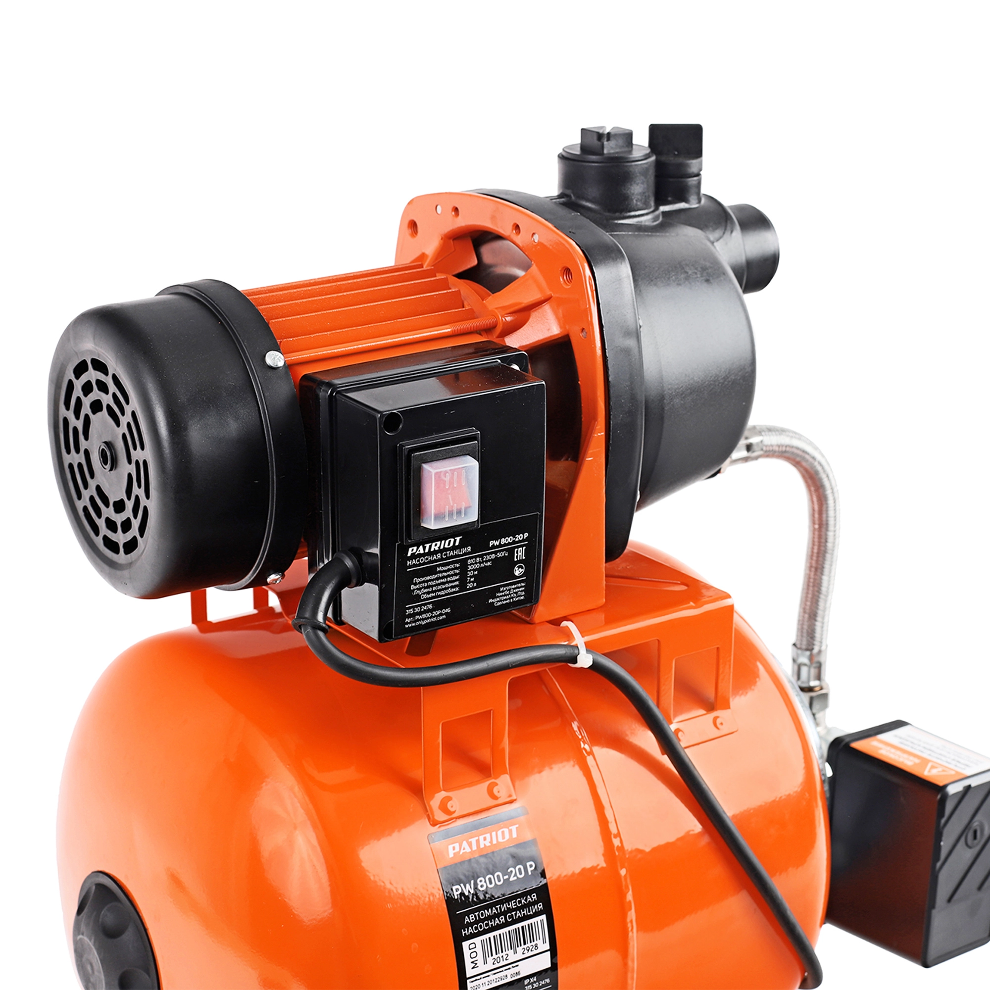 ПроизводителиНасосная станция PW800-20P (0,8кВт 3,0 м3/ч 50 л/мин 220В погр/под 7/30м Øфр 1мм) PATRIOT / OPTIMA