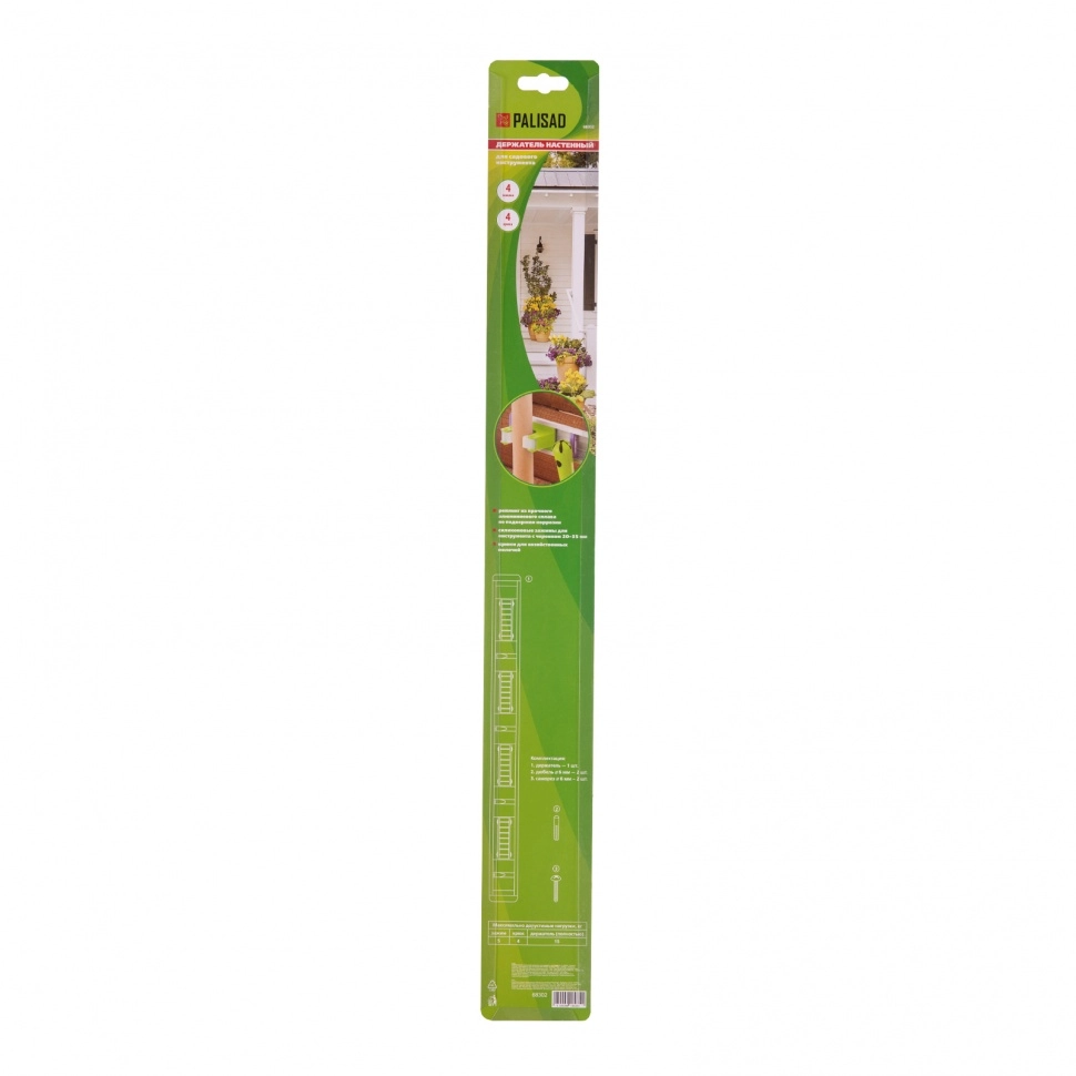 Алюминиевый настенный держатель Palisad 68302 с 4 ячейками и 4 крюками предназначен для хранения садово-огородного инструмента в подвешенном виде.