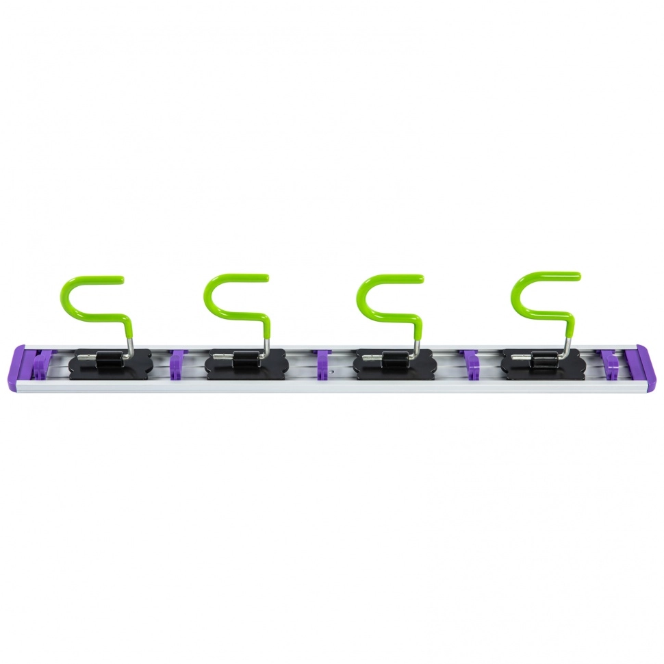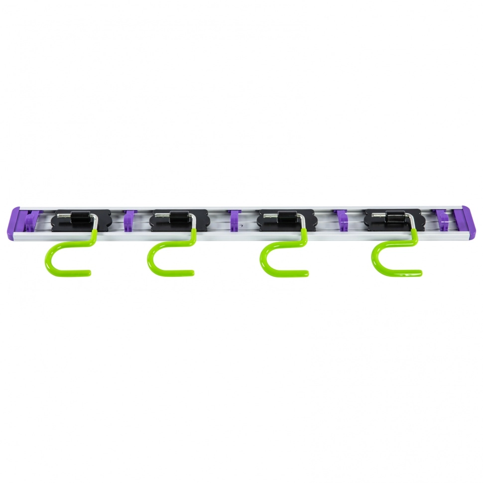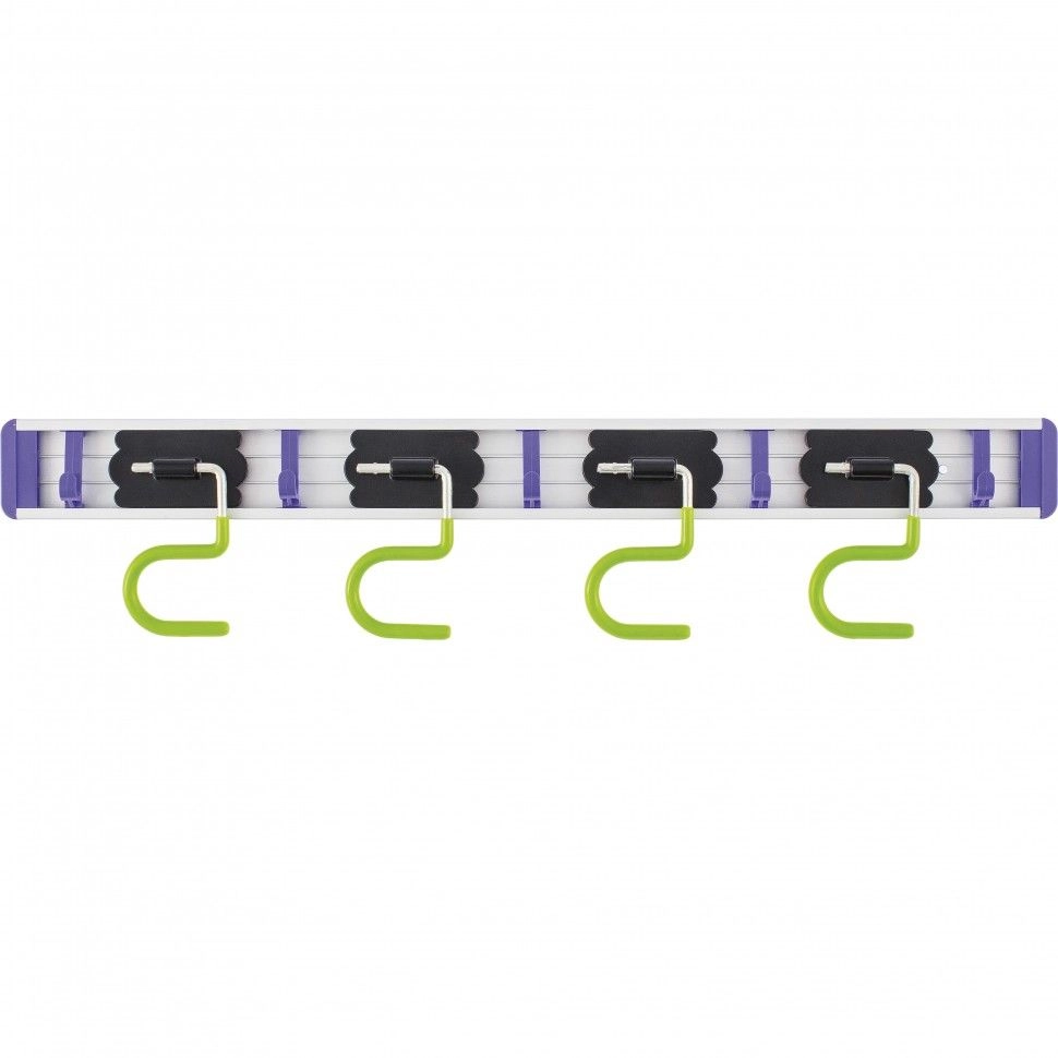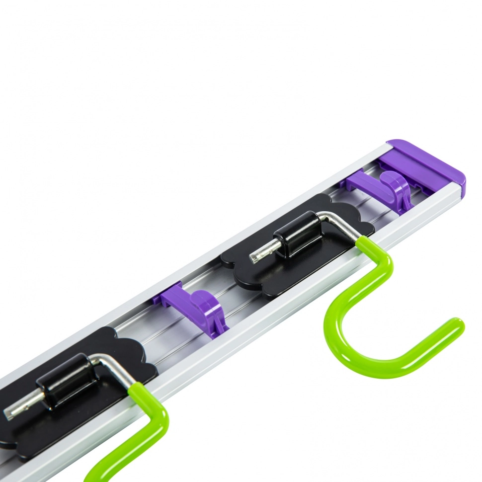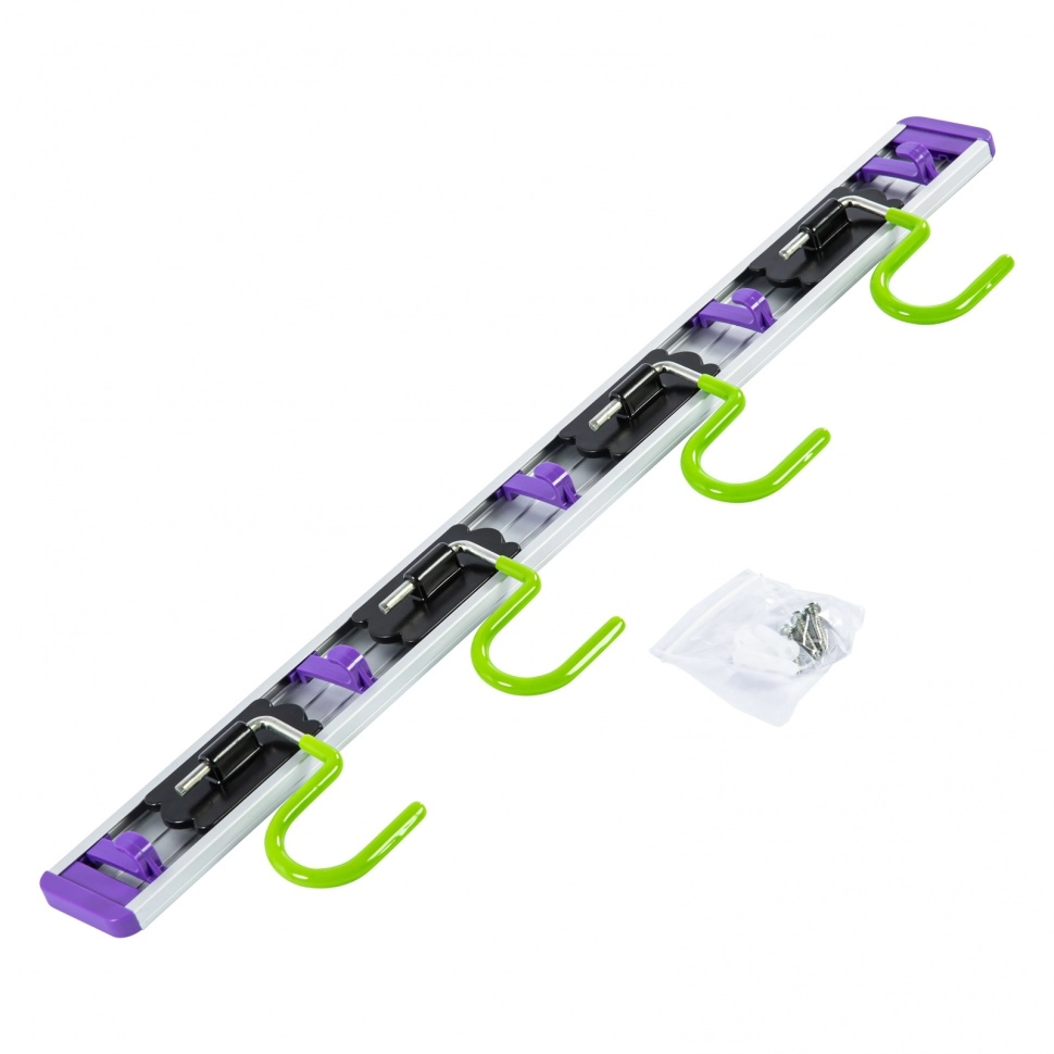 На нем можно разместить любой инвентарь не только с обычным черенком, но и с отверстием для подвесного хранения: швабры, веревки и т.д.