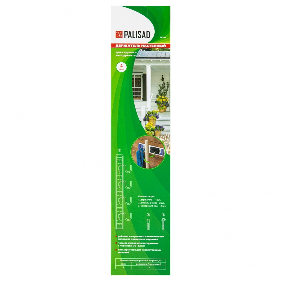 ПроизводителиНастенный держатель для садового инструмента алюм., 4 крюка (68304) PALISAD