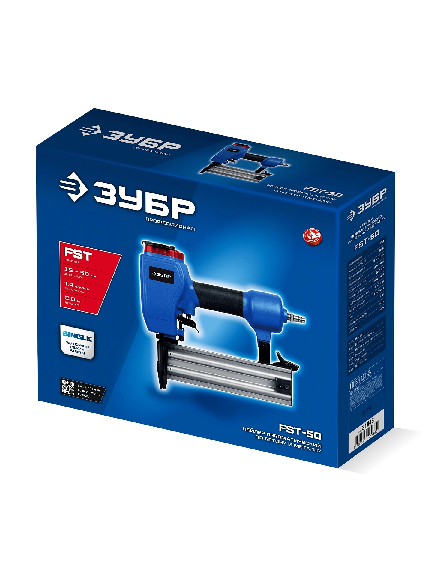 ПроизводителиНейлер для гвоздей по бетону и металлу, пневматический, FST-50, Профессионал (31943) ЗУБР