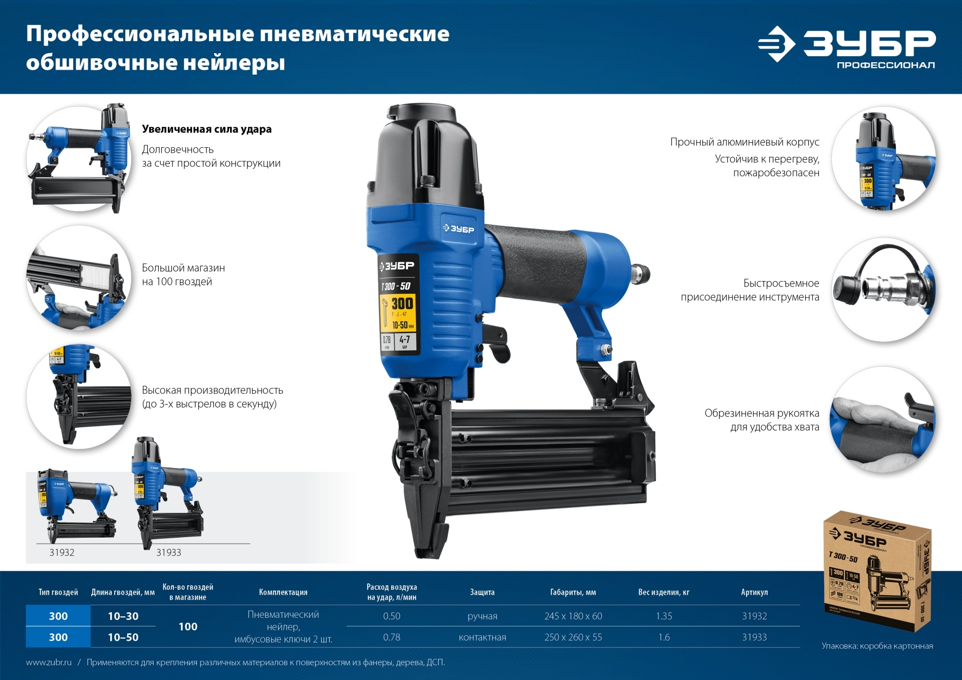 ПроизводителиНейлер (гвоздезабиватель) пневм., 10-32мм, тип 300 (31932) ЗУБР