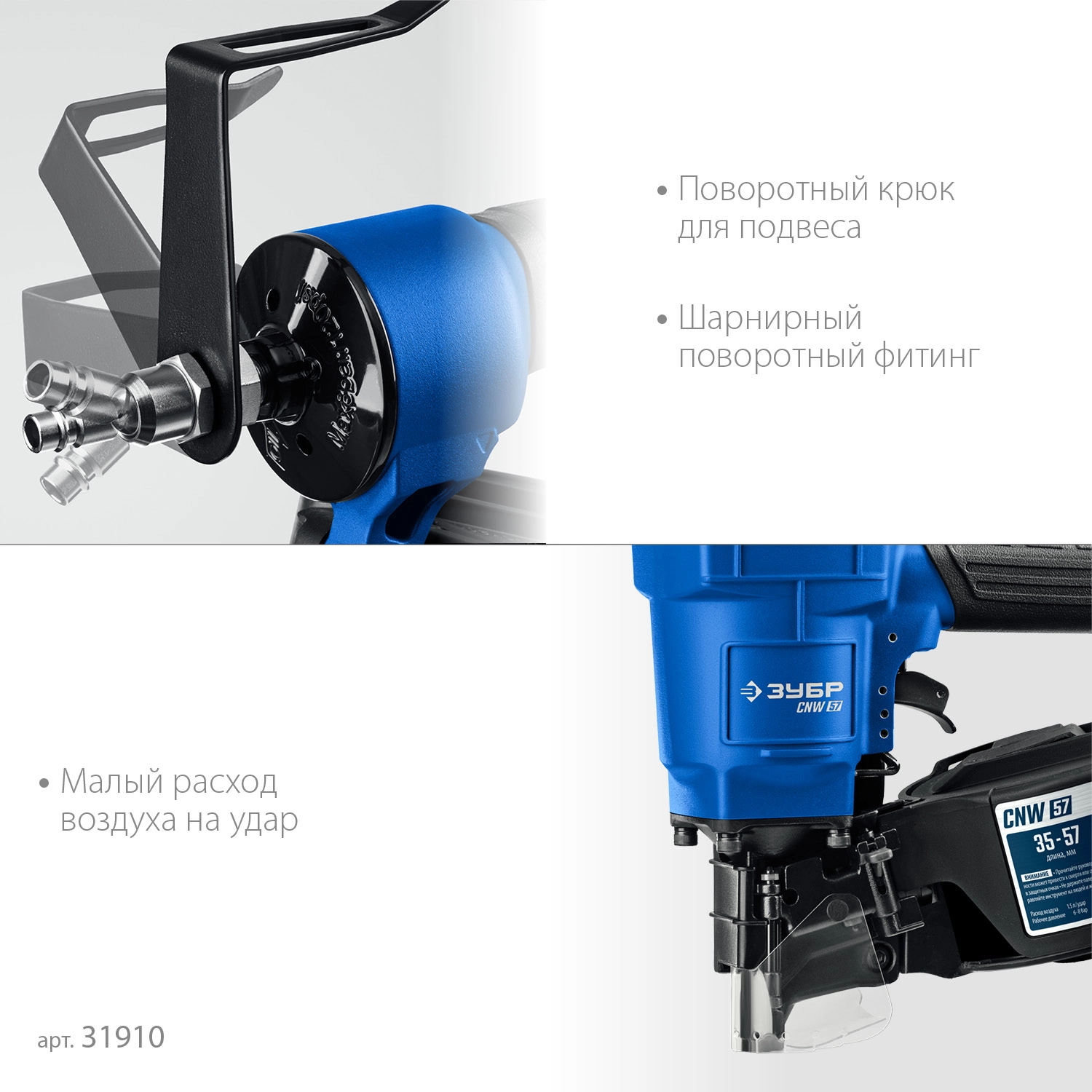 ПроизводителиНейлер (гвоздезабиватель) пневм., для барабанных гвоздей CNW (35-57 мм)(31910) ЗУБР