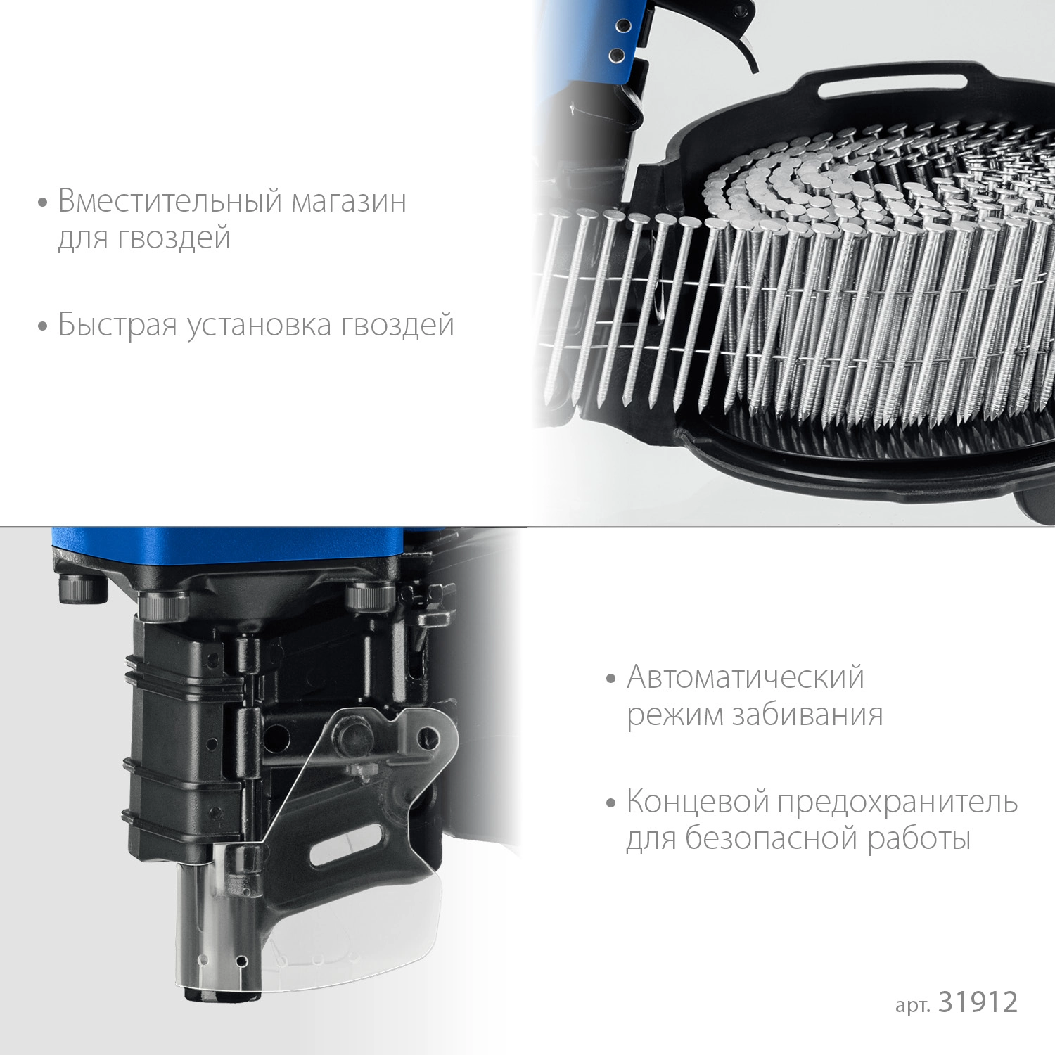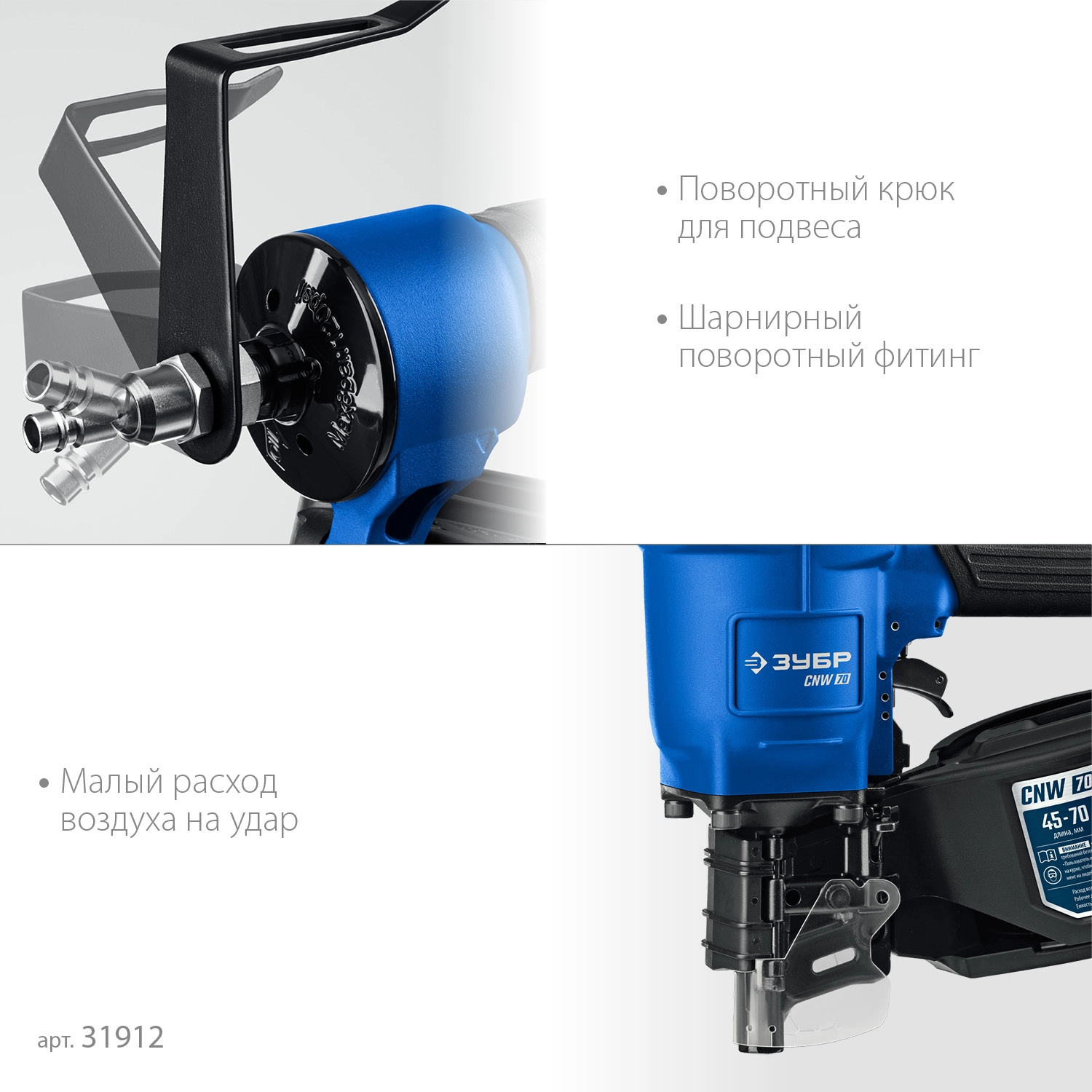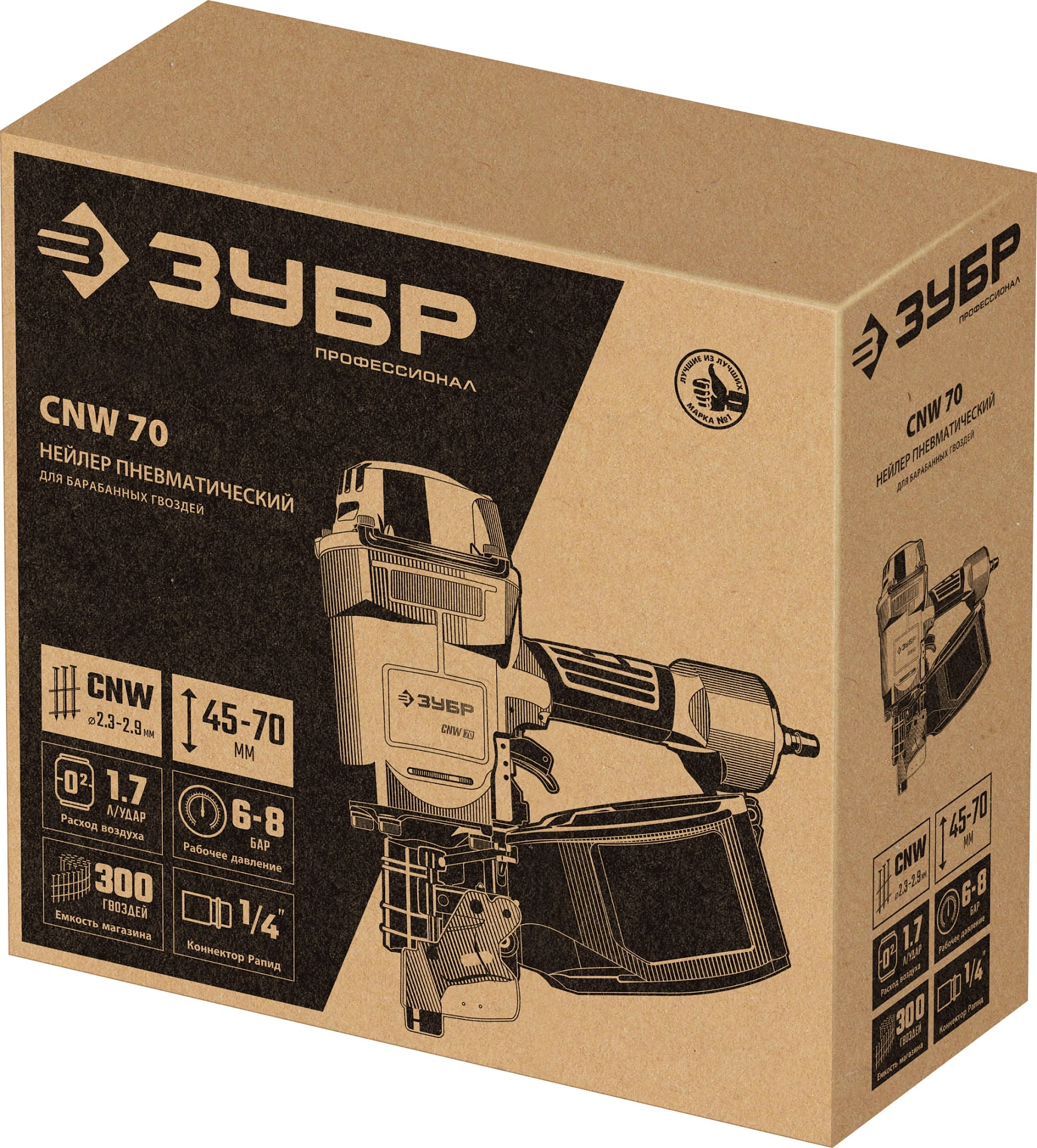 ПроизводителиНейлер (гвоздезабиватель) пневм., для барабанных гвоздей CNW (45-70 мм)(31912) ЗУБР