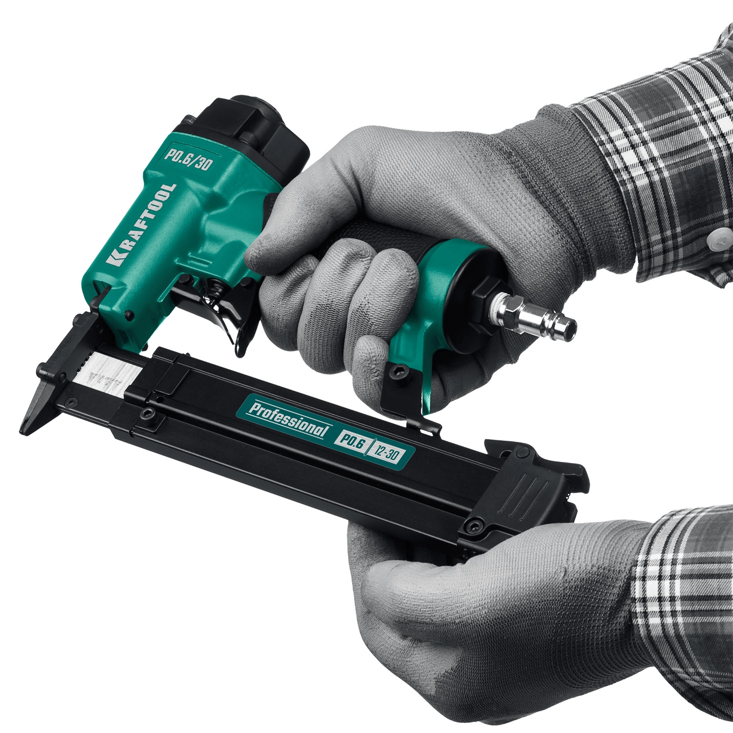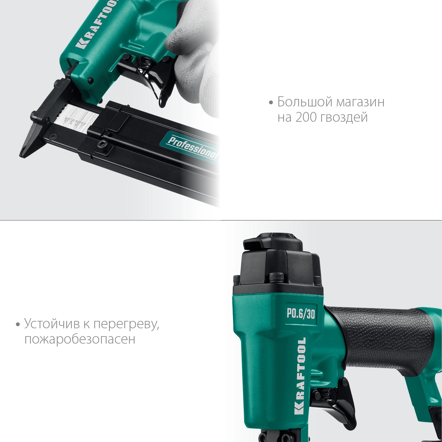 ПроизводителиНейлер пневм. (гвоздезабиватель) P0.6/30, шпильки тип P0.6 (12-30 мм) (31963) KRAFTOOL
