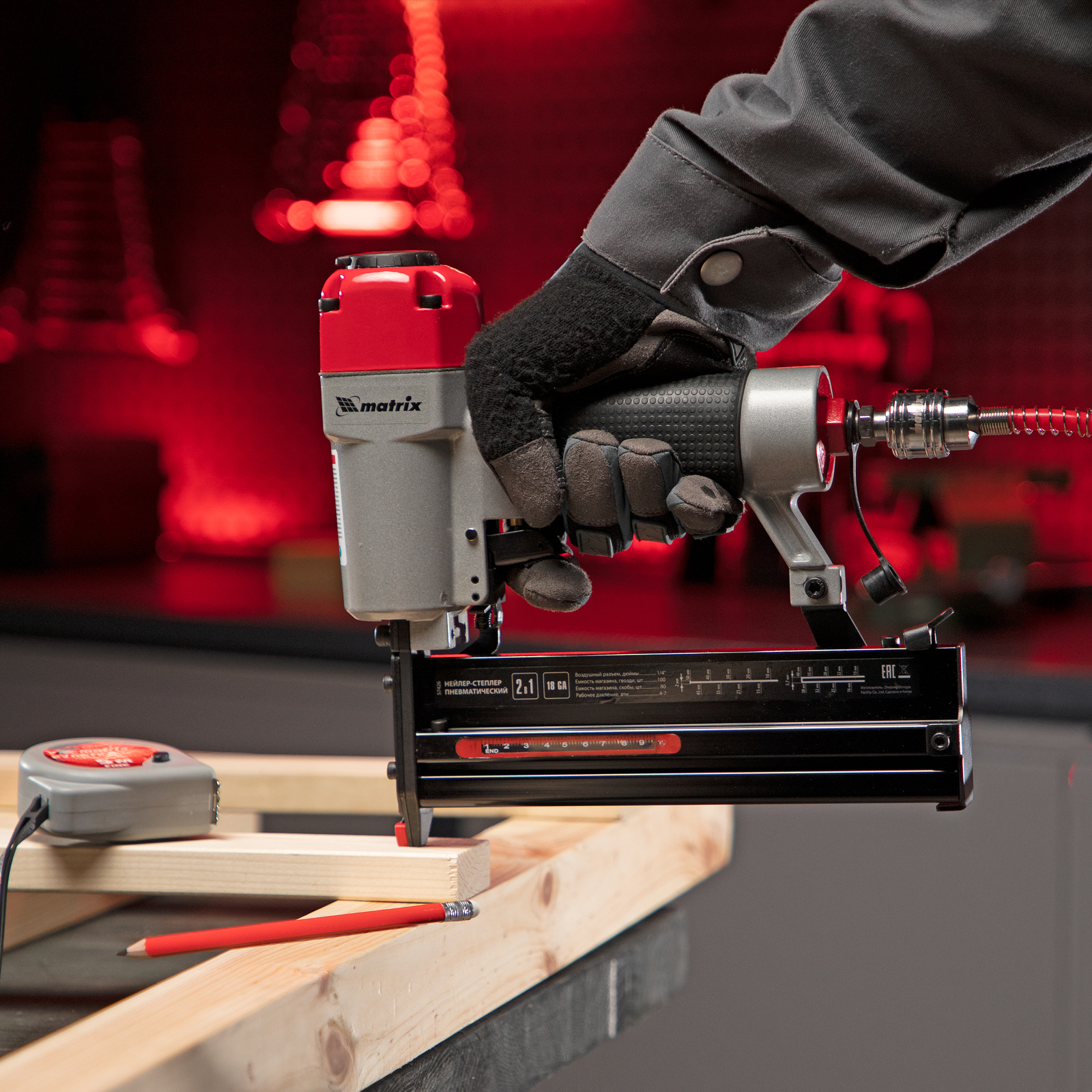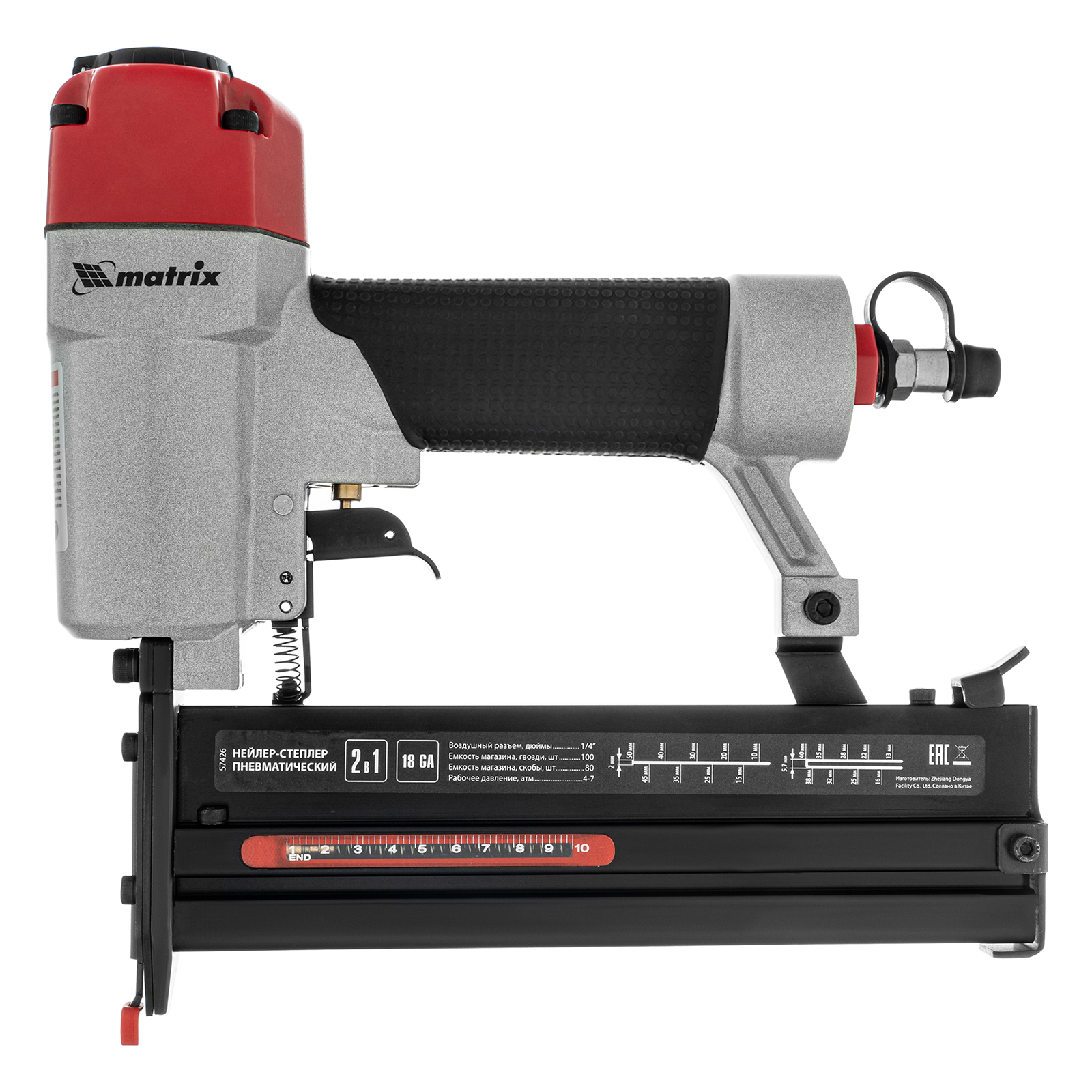 ПроизводителиНейлер-степлер пневм. 2 в 1, гвозди 18GA длина 10-50 мм, скобы 18GA длина 25-40 Matrix