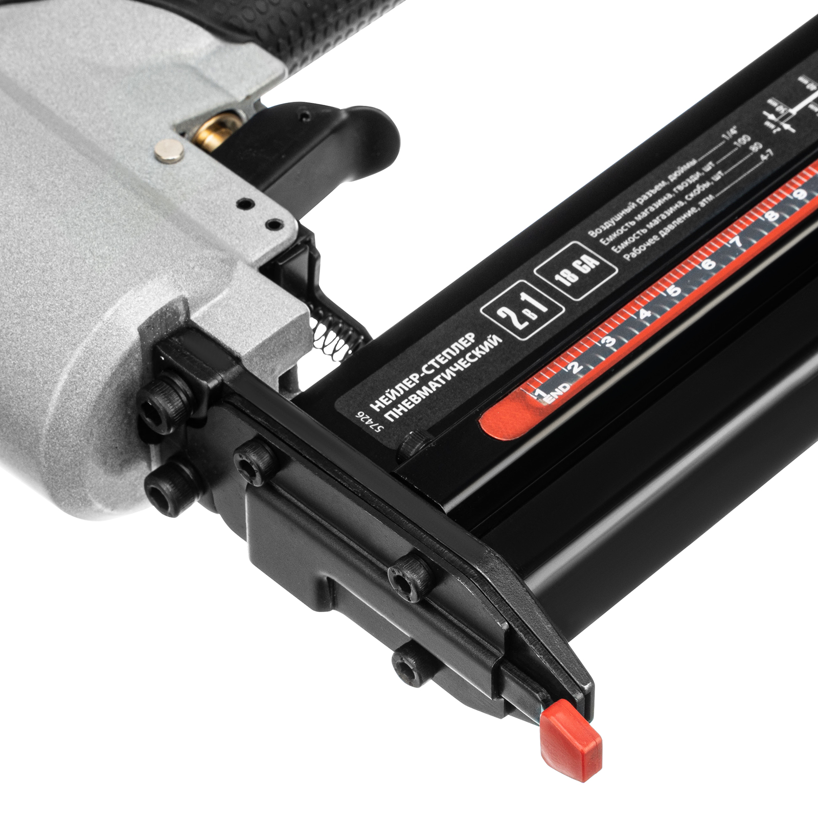 - Безопасность — специальный предохранитель не допускает случайного срабатывания нейлера-степлера.