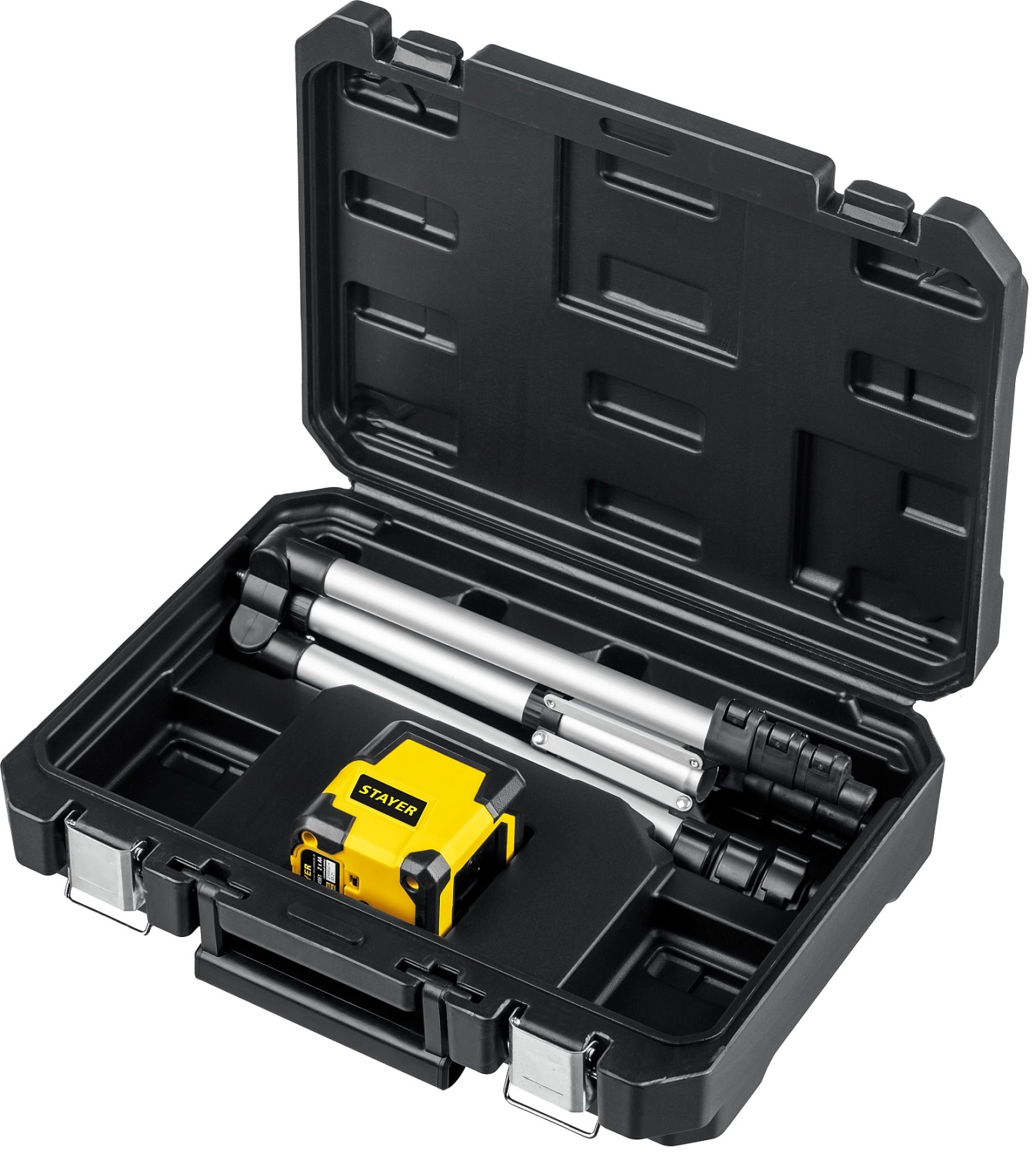 ПроизводителиНивелир лазерный 20м, точн. +/-0,5 мм/м, резьба 1/4", штатив, кейс (34961-2) STAYER