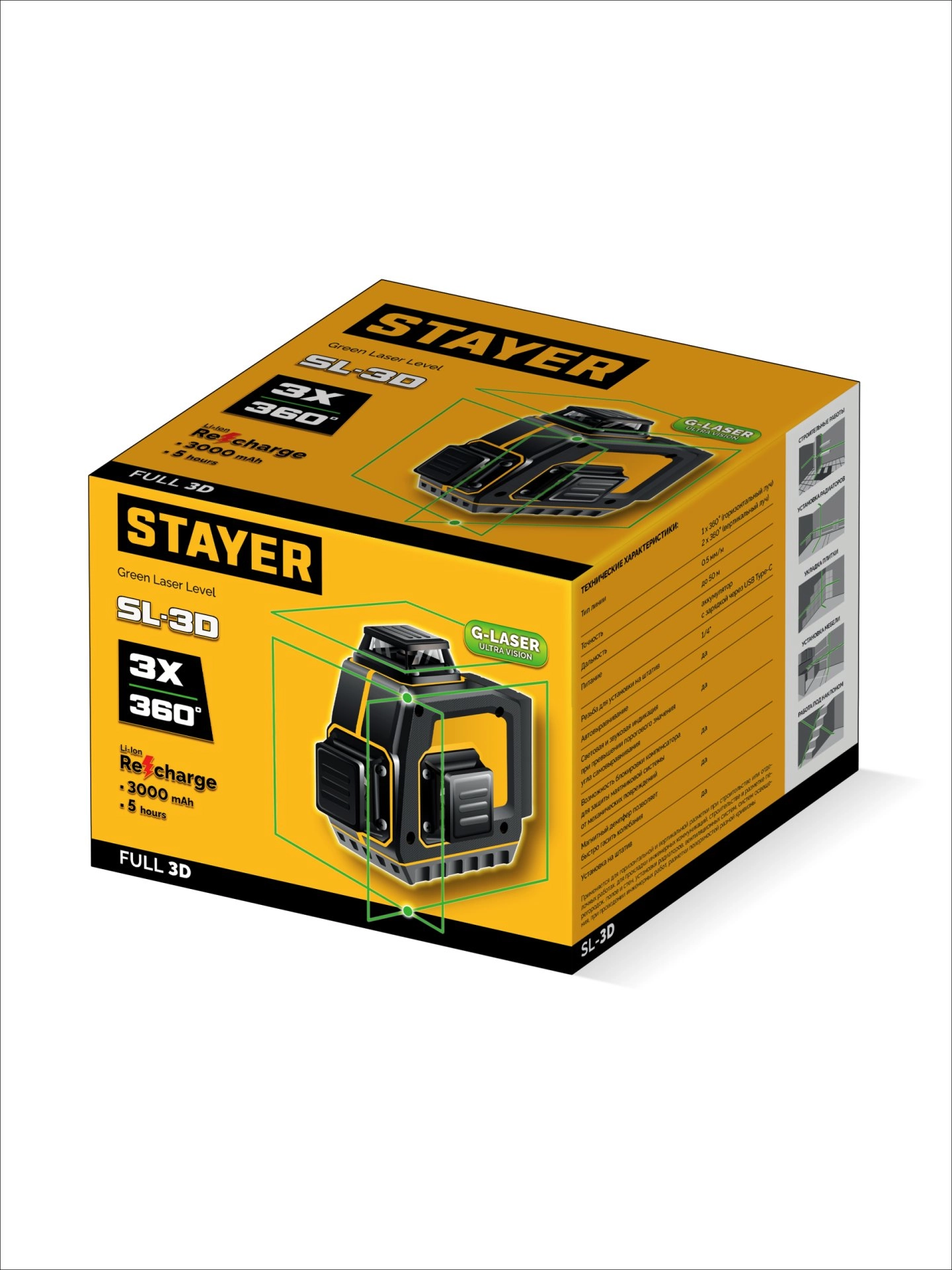 ПроизводителиНивелир лазерный "SL-3D", 50м, точн. +/-0,5 мм/м, кор. (34963) STAYER