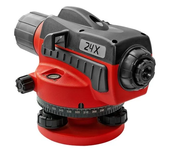 Нивелир обладает 24-кратным увеличением зрительной трубы с просветленной оптикой, что значительно улучшает видимость и облегчает наведение на удаленные объекты.