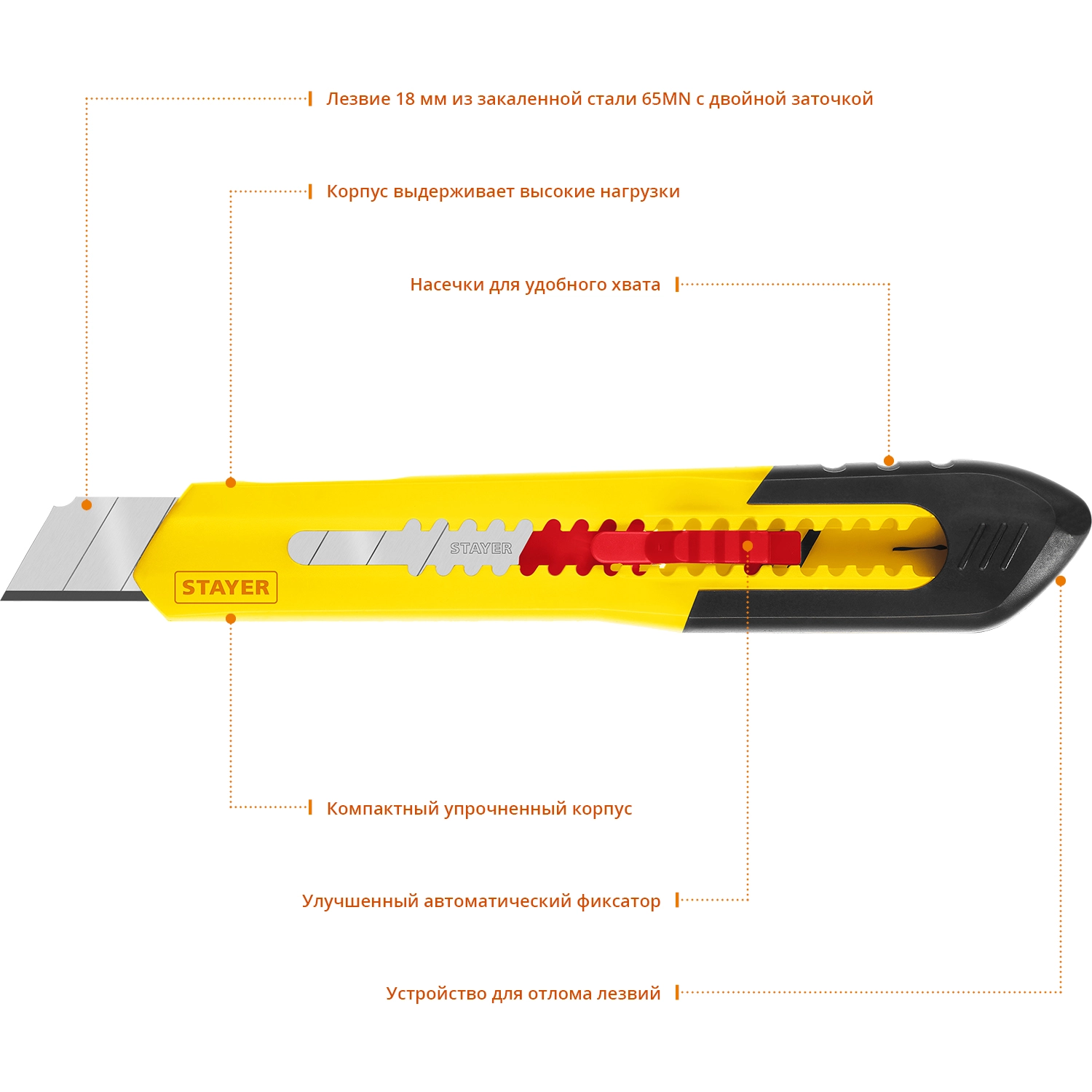 ПроизводителиНож из АБС пластика QUICK-18, сегмент. лезвия 18 мм, (0910_z01) STAYER