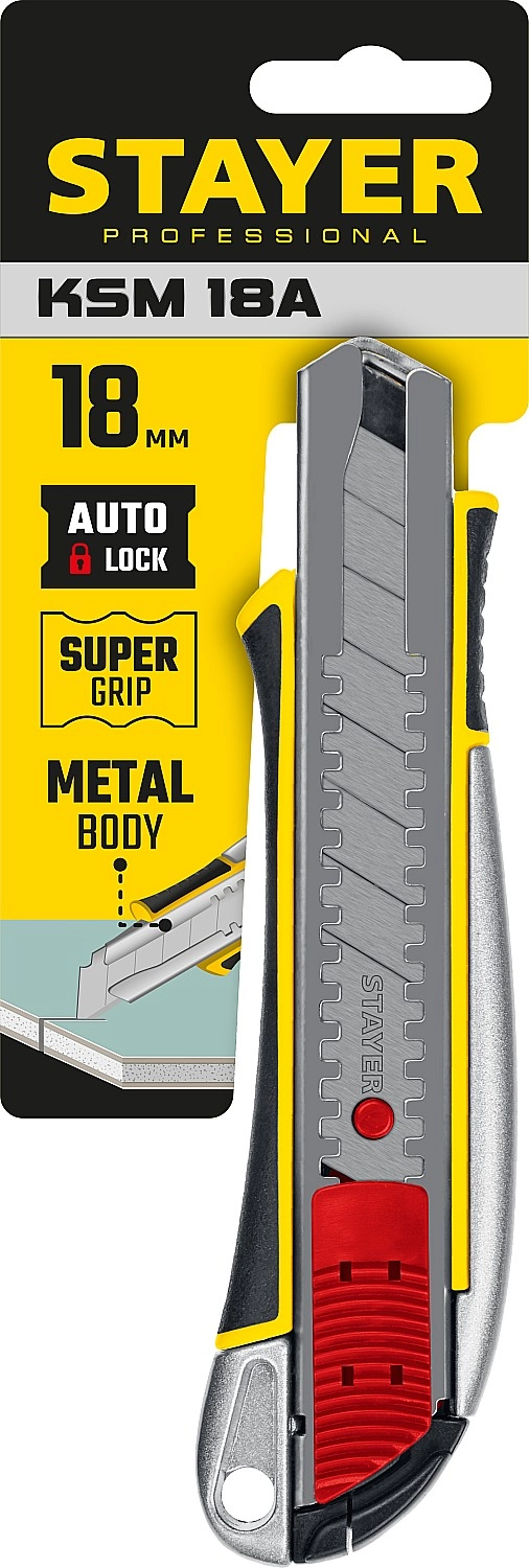 ПроизводителиНож металлический обрезиненный корпус, автостоп, 18мм "KSM-18A" (09143_z01) STAYER