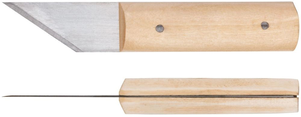«Металлист». Рассчитан на большие усилия. Для работы с кожей, резиной, линолеумом и т.д. Может применяться при работе с гипсокартоном. Материал: инструментальная сталь, деревянная ручка.Производитель: