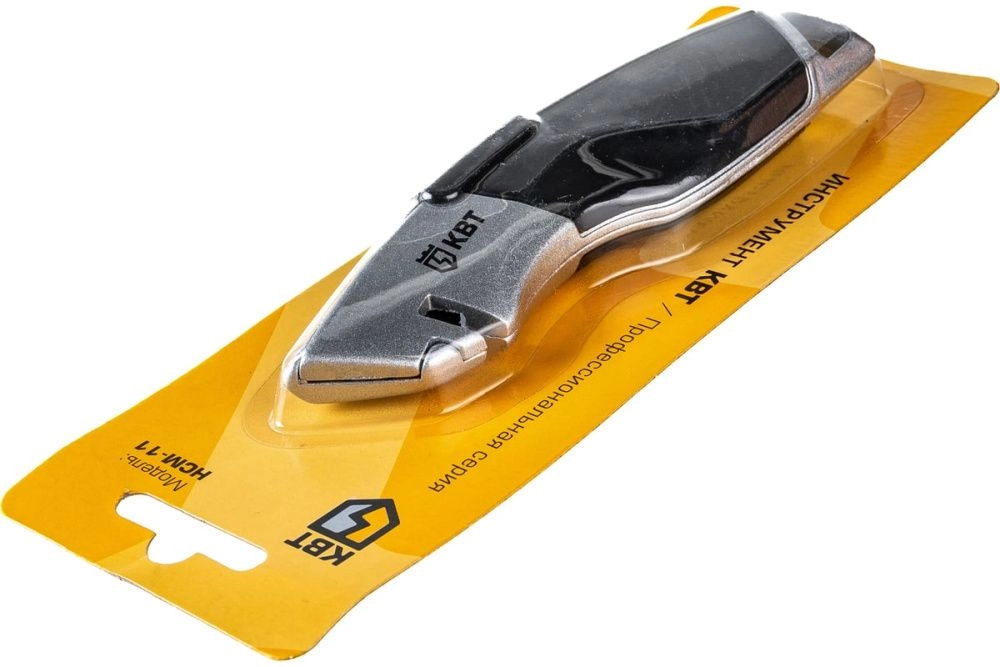 Нож строительный монтажный НСМ-11, КВТ 78496 — нож с трапециевидным двухсторонним лезвием предназначен для разрезания тонких строительных материалов (бумага, картон, пластик, резина и т.д.) Металлический корпус с прорезиненной рукояткой обеспечивает комфортную работу. В конструкции ножа предусмотрен стропорез
