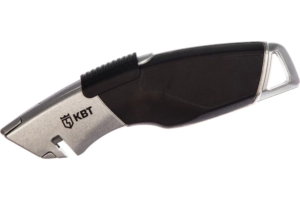 Характеристики КВТ НСМ-11: Тип лезвия: трапециевидное А24 Ширина лезвия: 18 мм Материал лезвия: инструментальная сталь Паз для безопасного реза веревок Корпус из легкого сплава с противоскользящими вставками Отверстие для подвешивания Вес: 86 г Длина: 165 мм Для замены подходят сменные лезвия КВТ: трапециевидные СЛ-Т-5 (арт. 78501) крючкообразные СЛ-К-5 (арт. 78502)