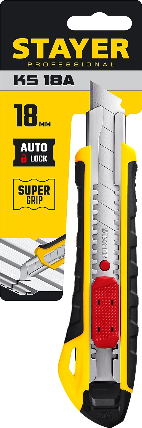 ПроизводителиНож технический, сегм. лезвие, 18мм, автостоп "KS-18A" (0916_z01) STAYER
