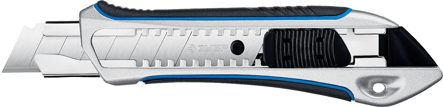 ПроизводителиНож технический, сегм. лезвие, 18мм, металл. корпус, автостоп, проф. (09177_z02) ЗУБР