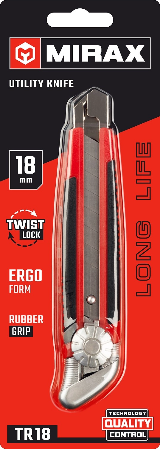 ПроизводителиНож технический, сегм. лезвие, 18мм, обрезиненный (09128) MIRAX