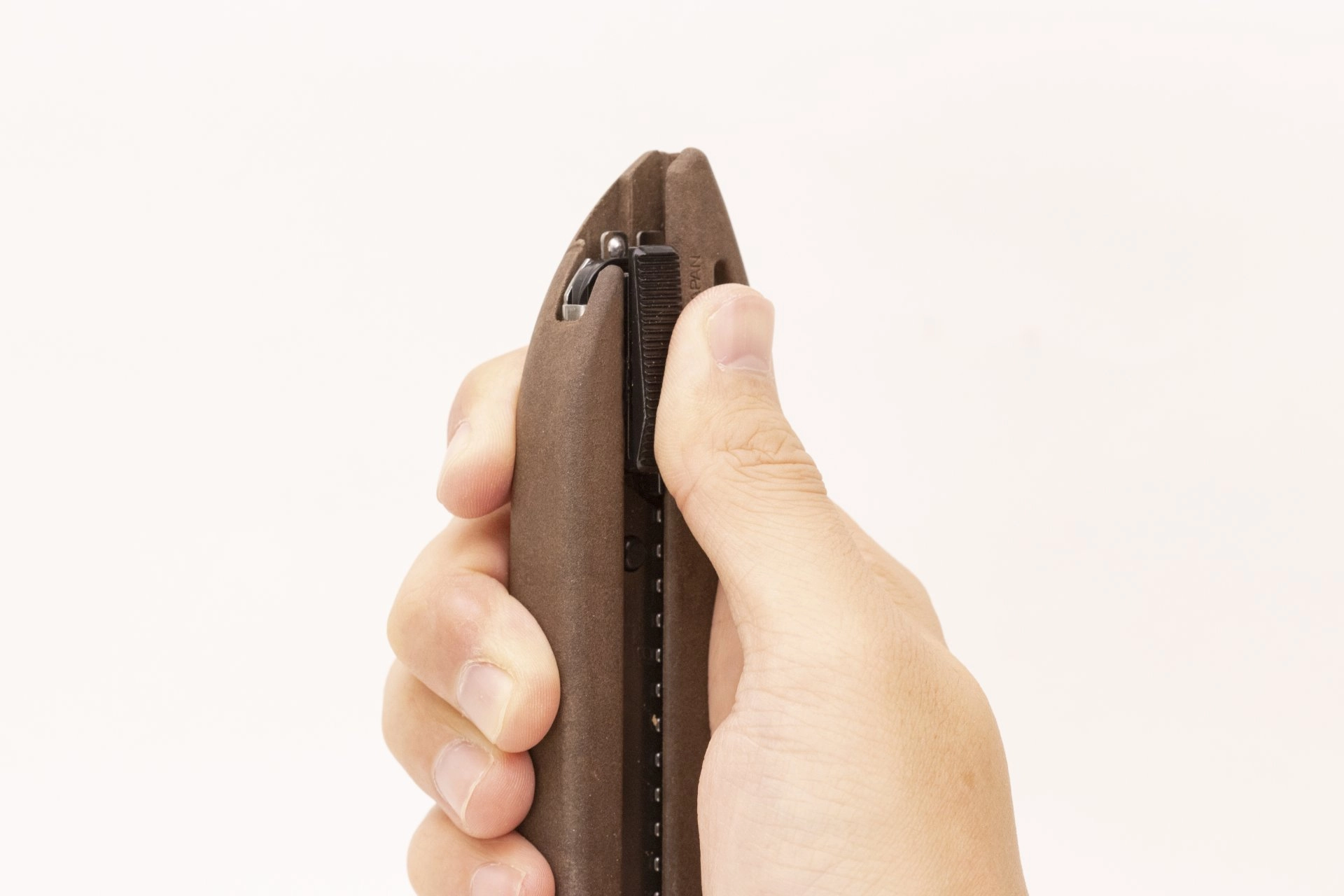 Универсальный нож серии OL-WD легкий и простой в использовании оснащен эргономичной противоскользящей рукояткой. Ручка из смеси натуральной древесины и специального пластика обеспечивает удобный и надежный захват даже жирными и потными руками. Нож можно использовать в сложных условиях: в мастерских, автосервисах, на производстве даже при низких температурах (до 15°C) Поставляется с лезвием LBB шириной 18 мм, которое на 25% острее стандартных лезвий OLFA. Просто отломите один из восьми сегментов, если лезвие затупилось. Полная замена происходит быстро и без дополнительных инструментов.