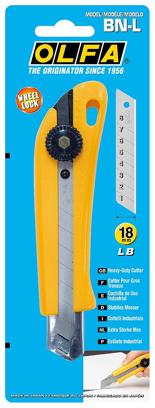 Универсальный нож OLFA 18 мм BN-L — это классический предмет первой необходимости. Этот нож имеет эргономичную прочную рукоятку из АБС-пластика для удобного использования. Гладкий лезвийный канал и винтовой механизм фиксатора удерживает лезвие именно там, где вы хотите, даже при работе в труднодоступных местах.