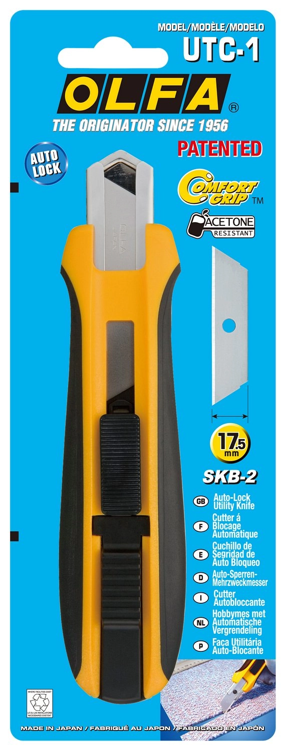 Универсальный нож OLFA UTC-1 идеально подходит для любых работ. Удобен в использовании и очень точен за счет усиленной фиберглассом рукоятки с резиновыми вставками по периметру. Выдвижной нож имеет пять положений лезвия для быстрой регулировки длины. Фиксатор с автоматической блокировкой надежно удерживает лезвие во время резки. Очистка выполняется легко благодаря стойкому к ацетону корпусу.