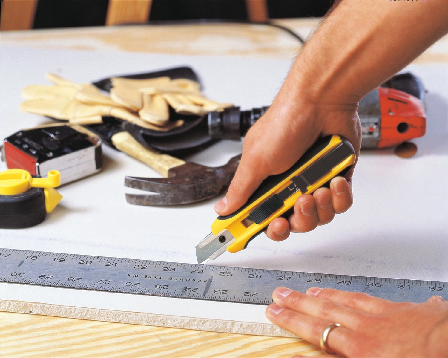 Применяется для разрезания гипсокартонных плит, обоев, бумаги, кровельных материалов, изделий из резины и кожи и срезания монтажной пены.
