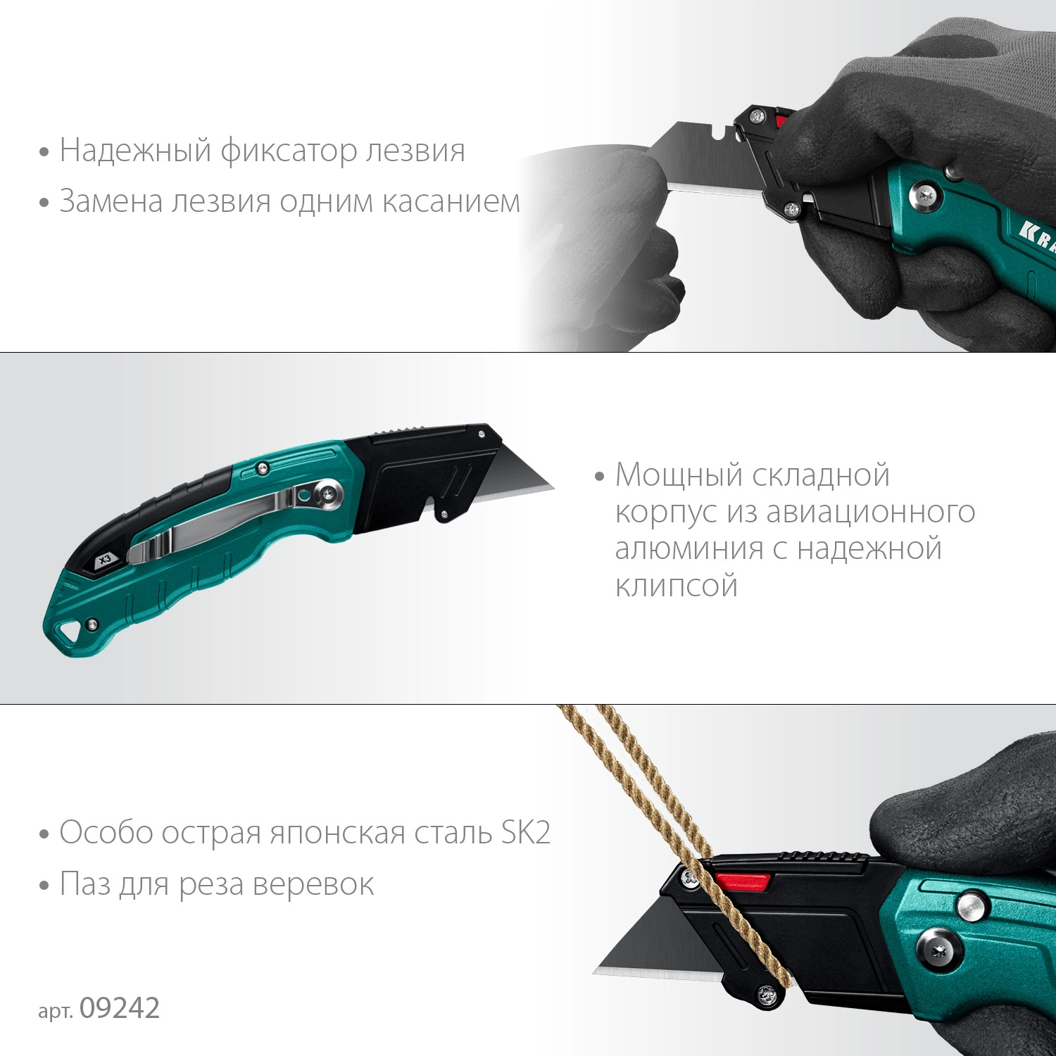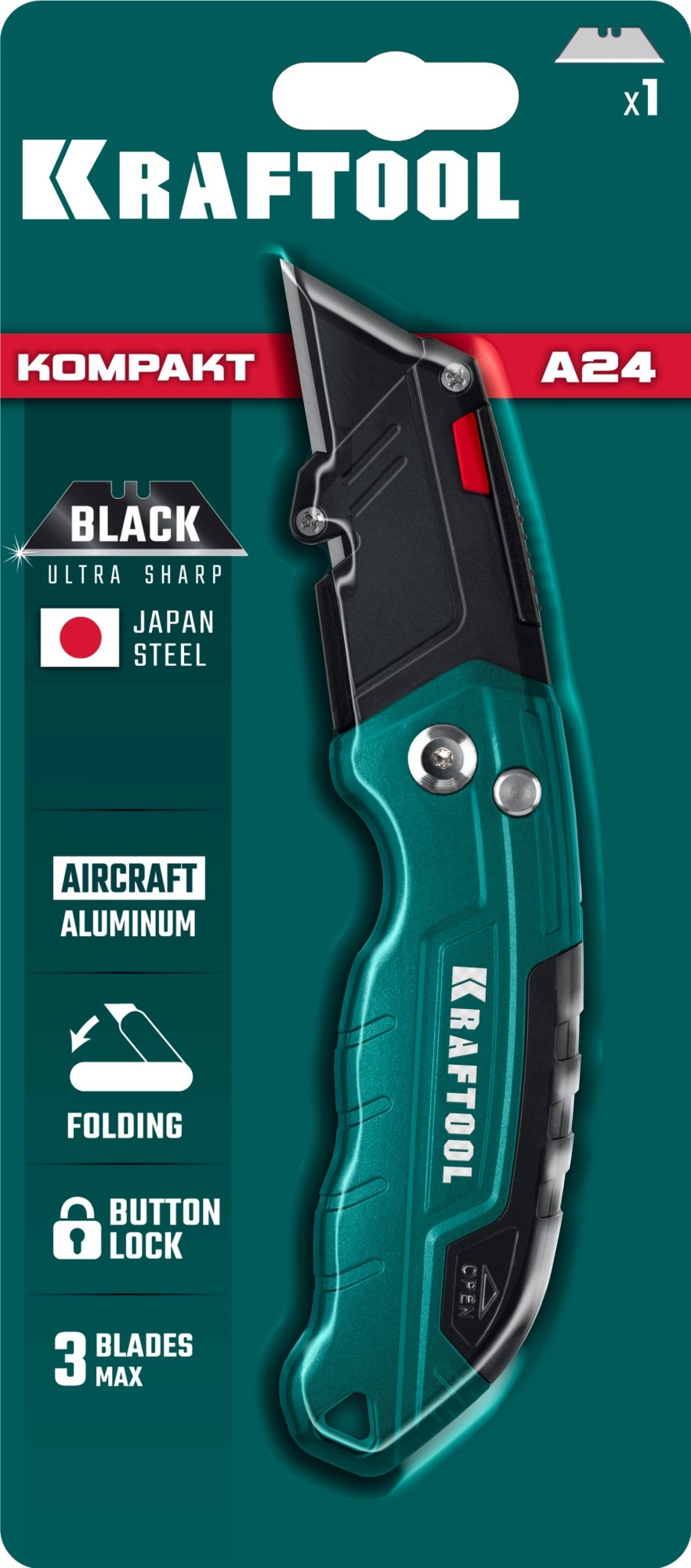 ПроизводителиНож технический, универсальный, для лезвий А24 и S24, складной, метал.обрез.корп. (09242) KRAFTOOL