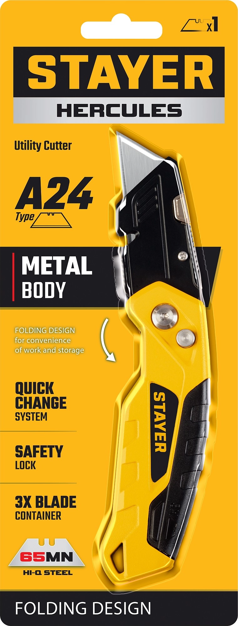 ПроизводителиНож технический, универсальный, для трапец. лезвий А24, складной, металл. обрез.корпус (0946) STAYER