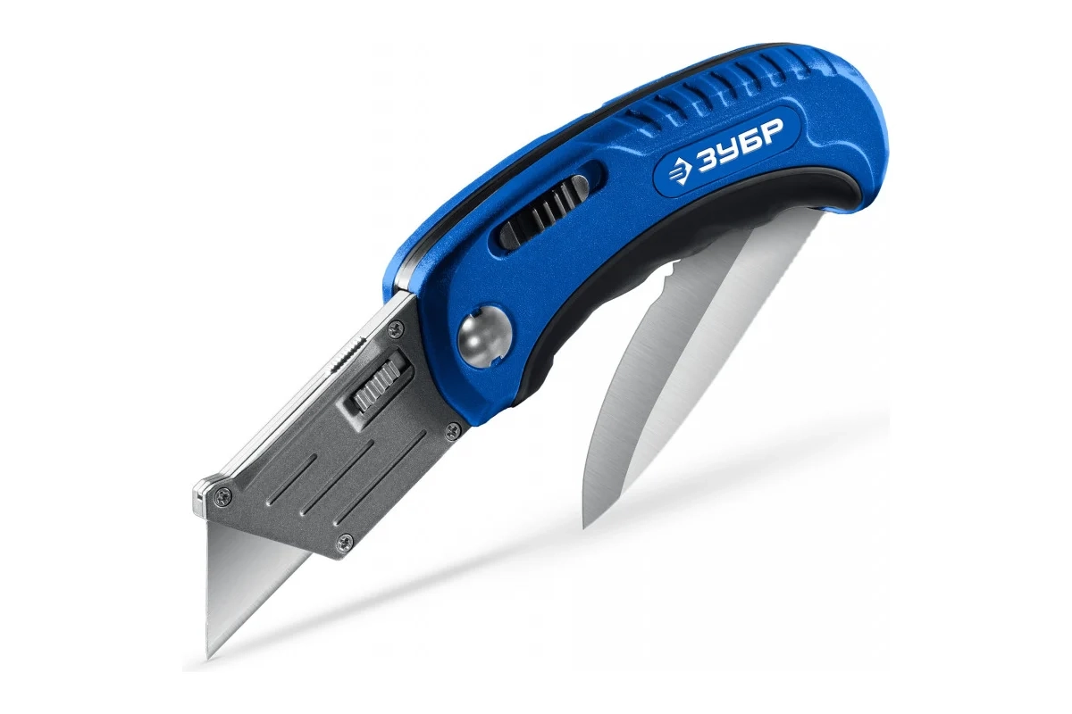 ПроизводителиНож универсальный складной, технический 2 в 1 с трапецевидным лезвием, Компакт-2-А24 (9227) ЗУБР
