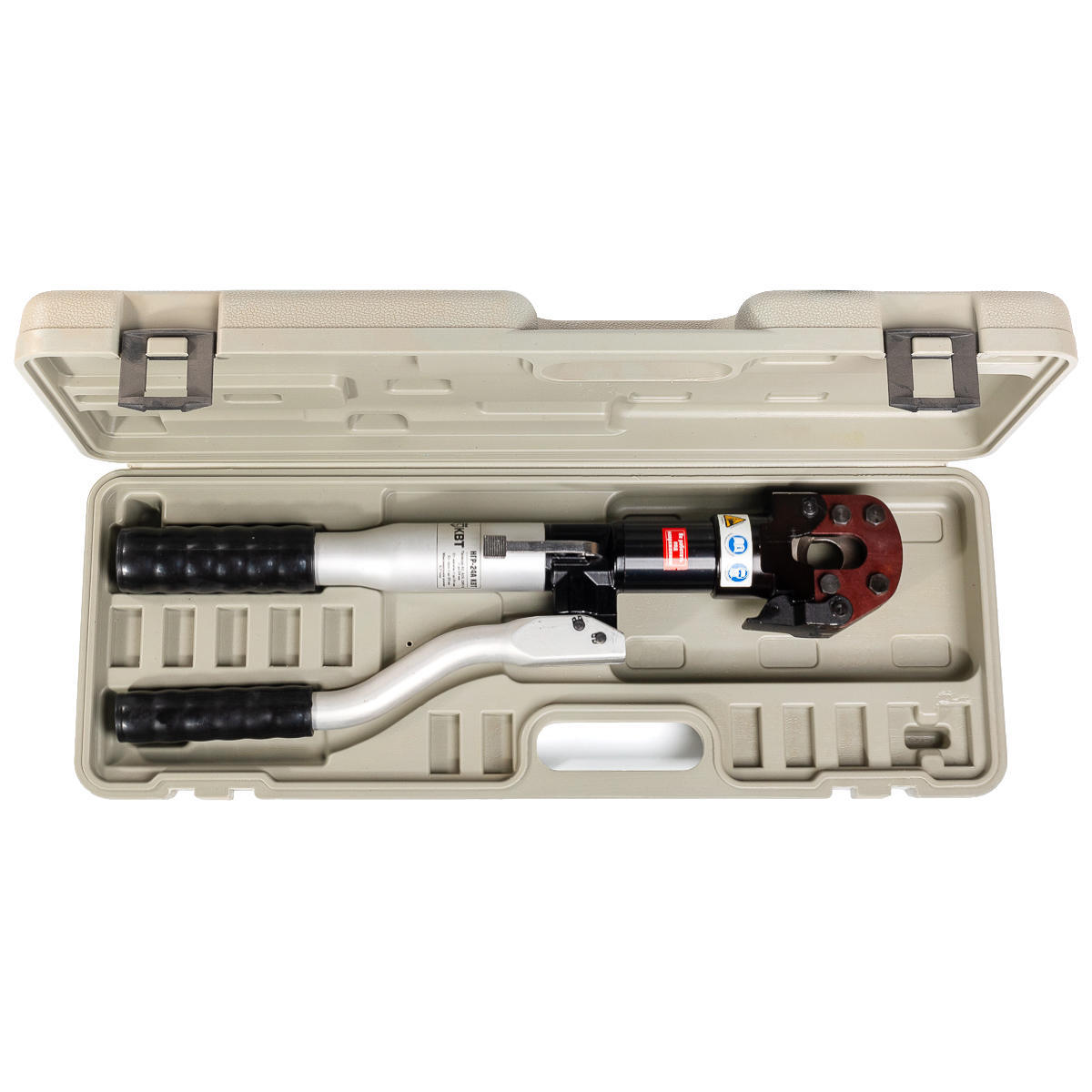 Автоматический возврат штока после завершения операции Материал лезвий: хром-молибденовая сталь Лезвия повышенной твердости HRC 58...62 Двухскоростная помпа Голова гильотинного типа Гидроцилиндр и рукоятки выполнены из легкого и прочного алюминиевого сплава В95 Эргономичный рычаг для сброса давления Режущее усилие: 7 т Вес: 4.60 кг Длина: 520 мм Упаковка: пластиковый кейс Габариты кейса: 610х225х85 мм Характеристики