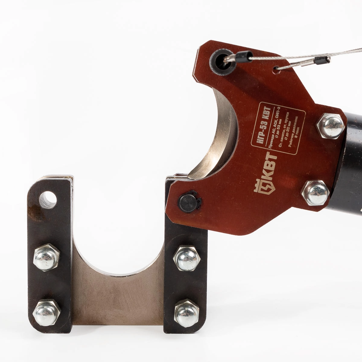 Характеристики КВТ НГР-53: Диапазон резки: провода АС, АСК, СИП-3 диаметром до 53 мм стальные тросы: 1х7 – диаметром до 15 мм 1х19, 1х37 – диаметром до 18 мм 6х7 – диаметром до 20 мм 6х19, 6х37 – диаметром до 20 мм