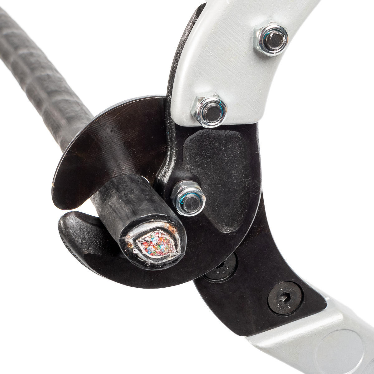 Характеристики КВТ НКМ-30: Диапазон резки: медные и алюминиевые кабели диаметром до 30 мм Материал лезвий: хром-молибденовая сталь Твердость лезвий HRC 46...50 Легкие литые рукоятки из прочного алюминиевого сплава Съемные лезвия на винтовых соединениях для легкой замены и заточки Стопоры, фиксирующие момент схождения лезвий Прорезиненные нескользящие рукоятки Вес: 1.70 кг Длина: 600 мм Характеристики