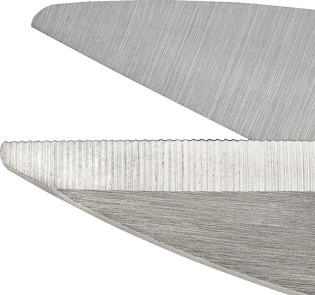 • Лезвия ножниц изготовлены из нержавеющей стали и имеют специальную серрейторную заточку, что исключает соскальзывания материала при работе
