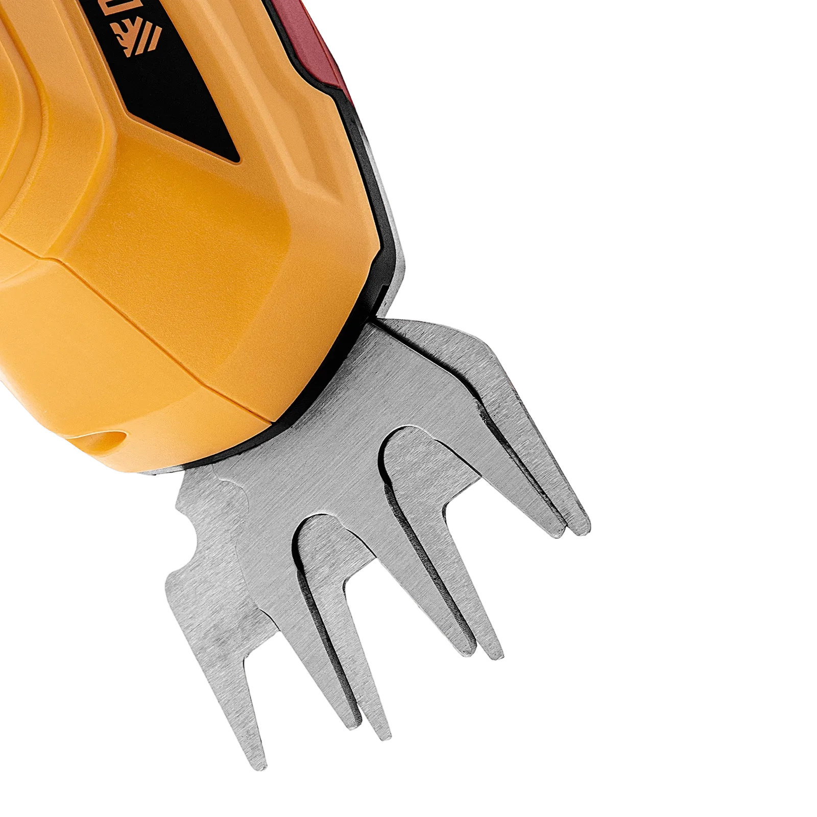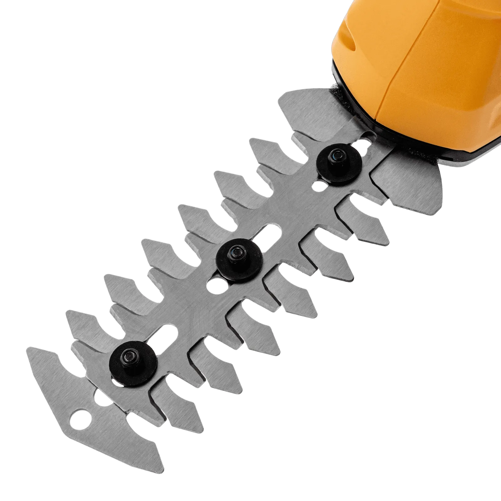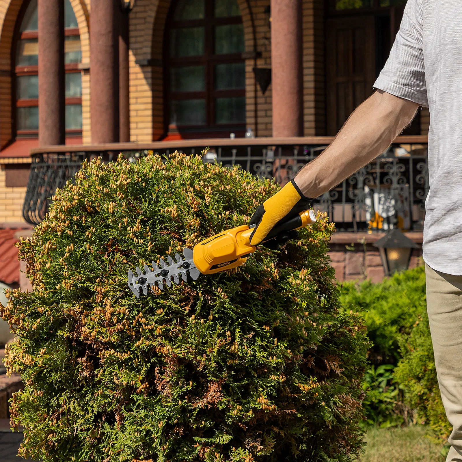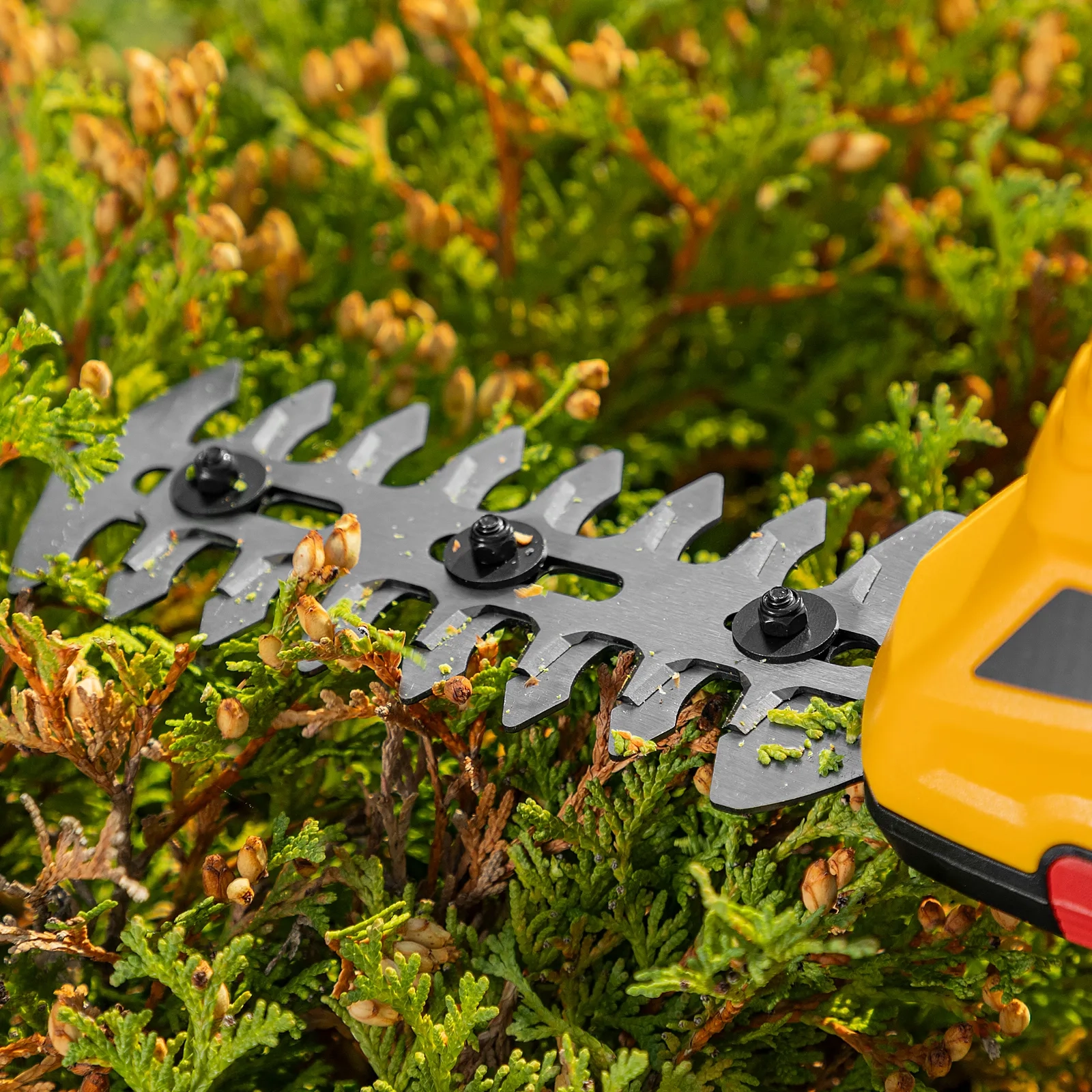 Аккумуляторные ножницы-кусторез Denzel G411 96817 с Li-Ion батареей напряжением 3,6 В и емкостью 1,5 Ач предназначены для поддержания декоративной растительности на дачном участке в аккуратном виде. В комплект входят две оснастки: для подрезания газонной травы и для обрезки кустов и тонких веток деревьев. Благодаря простому управлению и малому весу 0,6 кг с ножницами-кусторезами легко справятся даже пожилые люди.