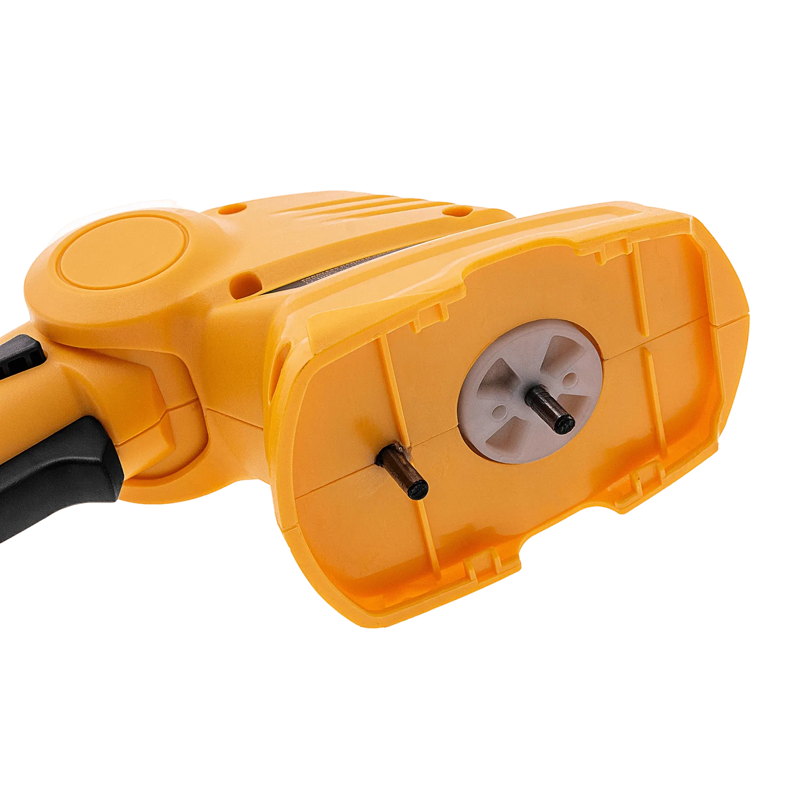 - Долговечность — медная обмотка двигателя устойчива к перегреву и обеспечивает стабильную работу ножниц-кустореза даже при высоких нагрузках.