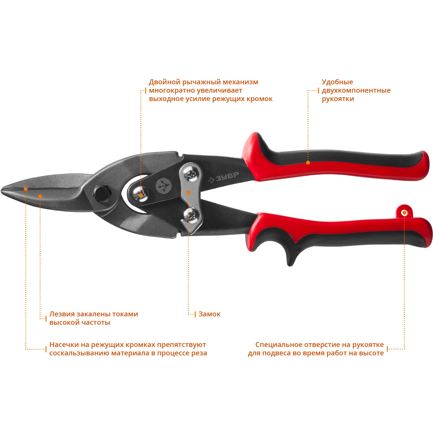 ПроизводителиНожницы по металлу, 250мм, прямые, Cr-V (23140-S) ЗУБР