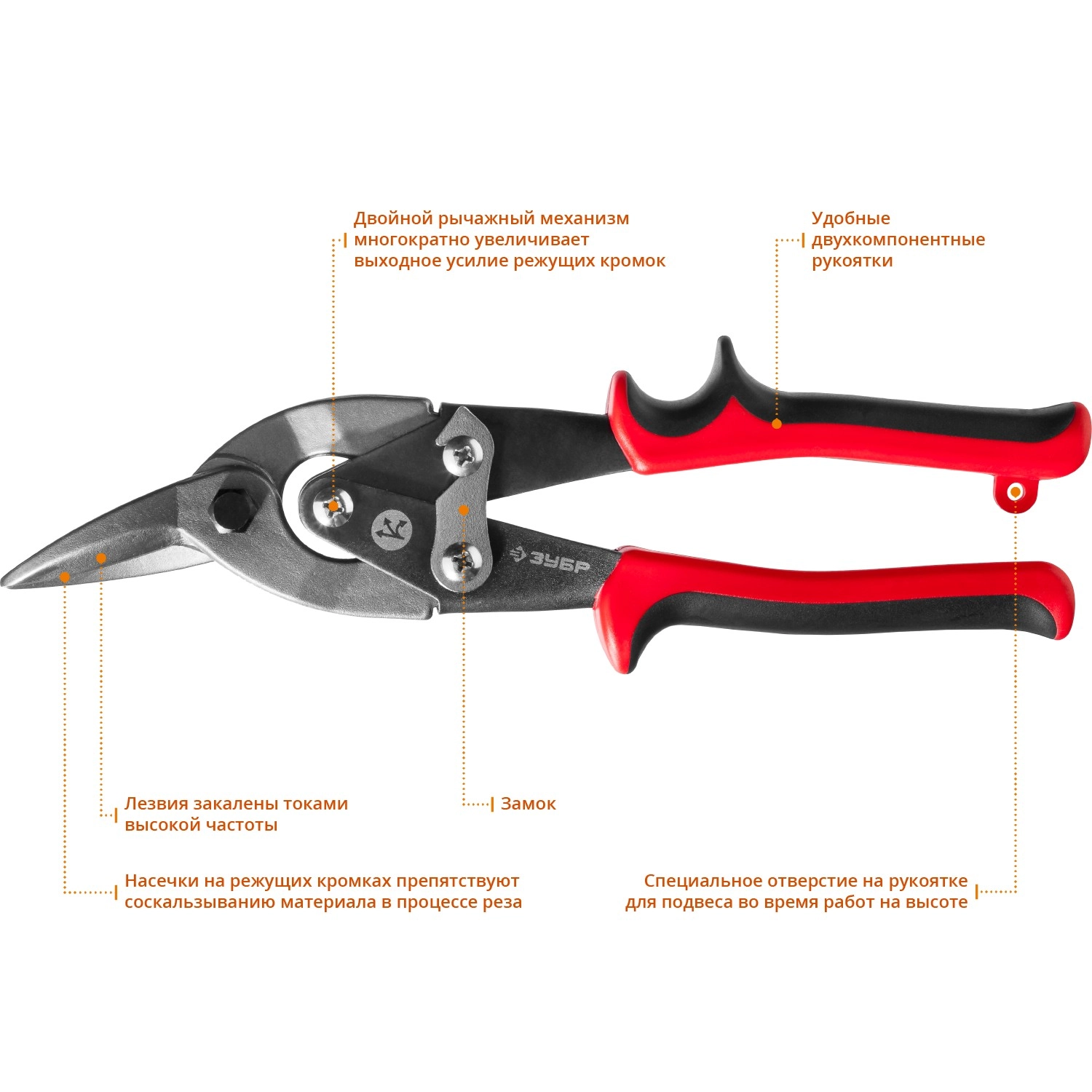 ПроизводителиНожницы по металлу двухрычажные, правые, У8А, 250 мм (23140-R) ЗУБР