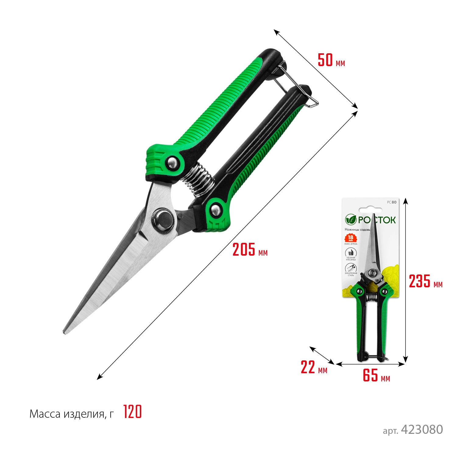 ПроизводителиНожницы садовые с эргоном. пласт. рукоятками, 205мм "PC-80" (423080) РОСТОК