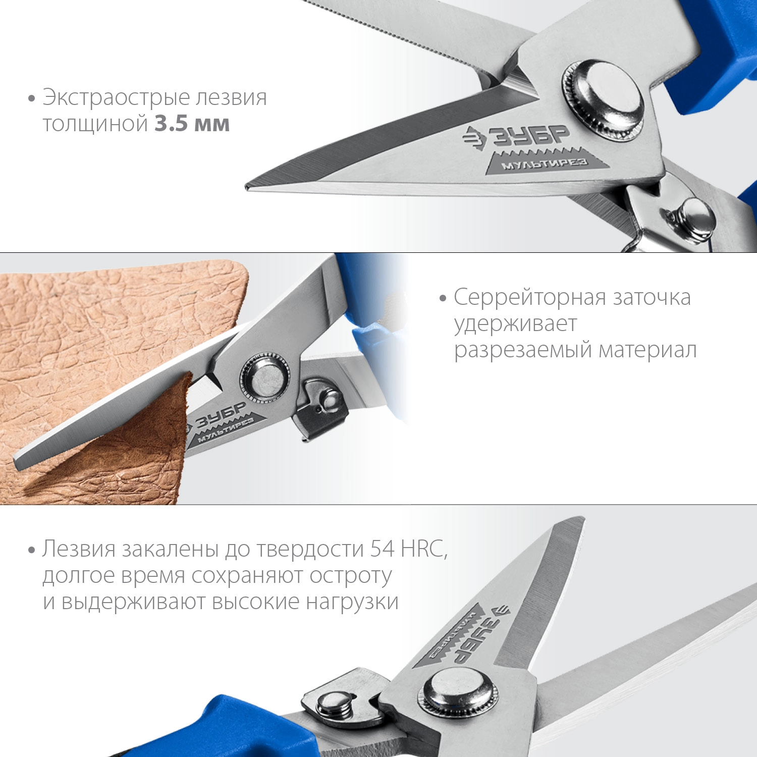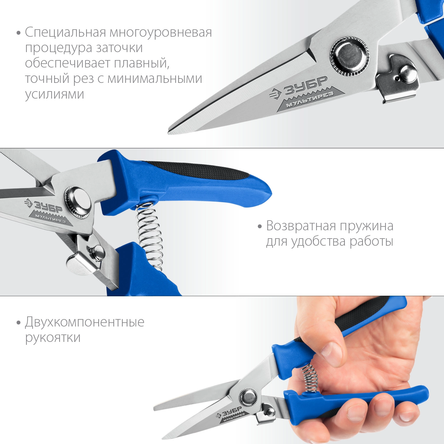 ПроизводителиНожницы универсальные технические, 200мм, прямые, Cr-V "МУЛЬТИРЕЗ" (23215) ЗУБР