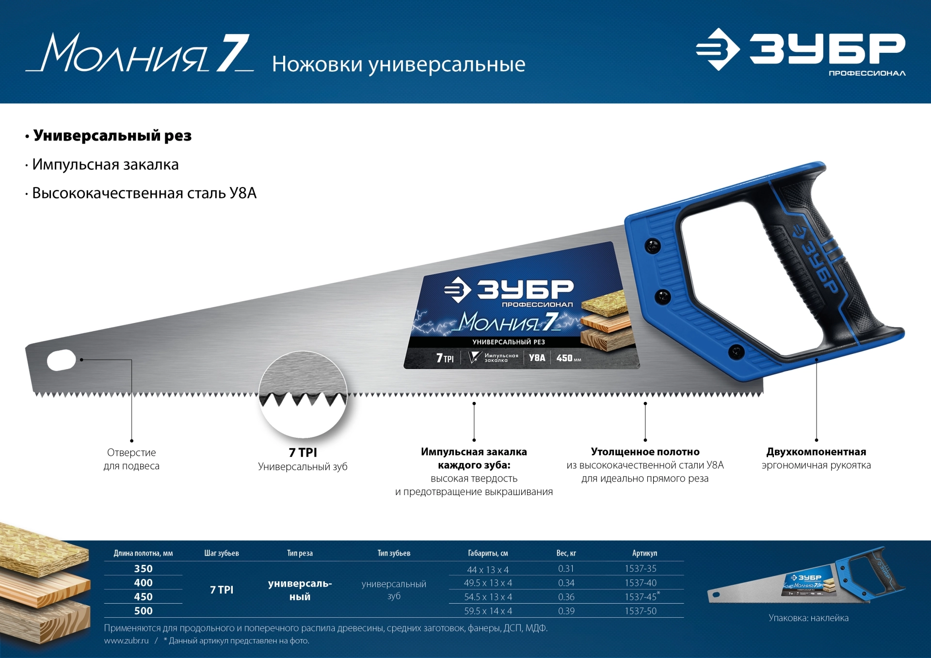 ПроизводителиНожовка по дереву, 500мм, зуб 7TPI "Молния-7" (1537-50_z02) ЗУБР