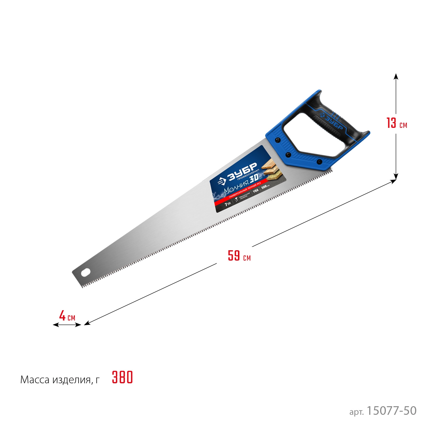ПроизводителиНожовка по дереву, 500мм, 7TPI "Молния-3D" (15077-50_z01) ЗУБР