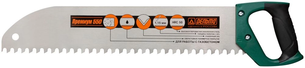 ПроизводителиНожовка по пенобетону (Премиум), закругл. полотно, усил. зуб, шаг 16 мм, 550 мм (F_40762) Дельта