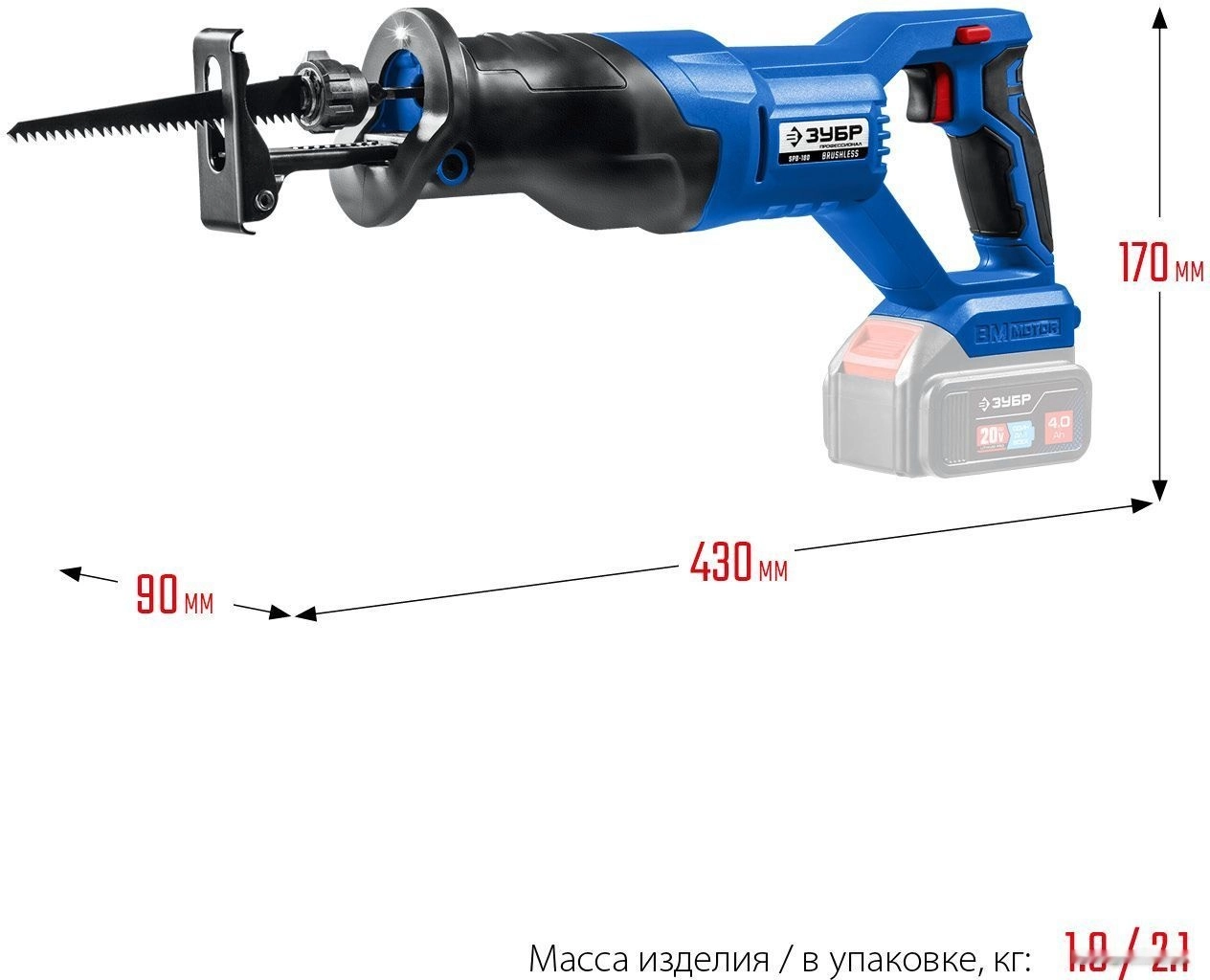 ХарактеристикиАртикул SPB-180Бренды ЗубрСтрана производства КитайАккумуляторная система ЗУБР Li-Ion PRO 20BТип сабельнаяЧисло оборотов холостого хода 2600Напряжение аккумулятора 20Глубина пропила дерева, мм 180Глубина пропила стали, мм 13Емкость аккумулятора 2Напряжение 20Тип аккумулятора Li-ionКейс в комплекте нетВес 1.8Питание аккумуляторГлубина пропила (дерево) 180Длина полотна 28Число ходов полотна 2600Регулировка скорости распила естьДлина 450Подключение к пылесосу нетГлубина пропила (металл) 13Ширина 170Высота 90Плавный пуск нетЛазерный маркер нетПылесборник нетПодсветка естьХод полотна 28Bluetooth НетОписание товара обновлено 08.12.2025 13:58:16Для продольного, поперечного, косого и фигурного пиления заготовок из дерева, фанеры, ДСП, пластмасс, металла, пенобетона, газобетона, гипсолита, кирпича (при установке соответствующего полотна), а также широко применяется для демонтажных и монтажных работ.