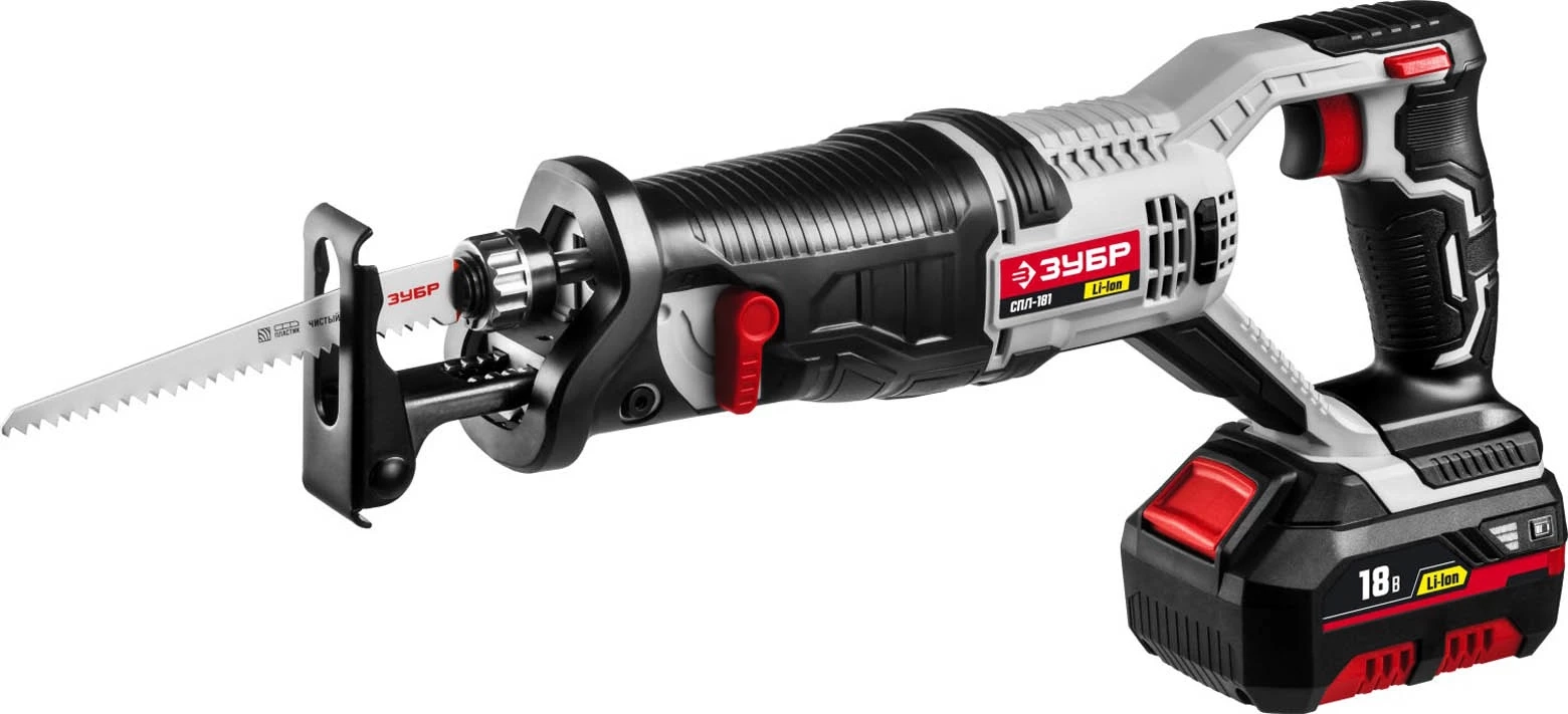 ПРОФИУровень качества. При классификации продуктов, имеющих схожее наименование, но обладающие различными потребительскими свойствами мы приняли следующий Вес факторов: 80% - подтвержденный ресурс, 15% - заявленная производительность/скорость, 5% - субъективные ощущения потребителя. ПодробнееКод товара: 0048240(0)ХарактеристикиАртикул СПЛ-181Бренды ЗубрСтрана производства КитайАккумуляторная система ЗУБР Li-Ion C1Тип сабельнаяНапряжение аккумулятора 18Глубина пропила дерева, мм 180Глубина пропила стали, мм 12Частота ходов 2600Емкость аккумулятора 3Напряжение 18Тип аккумулятора Li-ionКейс в комплекте нетВес 2.2Питание аккумуляторГлубина пропила (дерево) 180Длина полотна 22Число ходов полотна 2600Регулировка скорости распила естьДлина 390Подключение к пылесосу нетГлубина пропила (металл) 12Ширина 100Высота 190Плавный пуск нетЛазерный маркер нетПылесборник нетПодсветка нетХод полотна 22Дополнительный аккумулятор НетОписание товара обновлено 08.12.2025 13:58:28Пила сабельная (электроножовка) ЗУБР СПЛ-181, предназначена для продольного, поперечного, косого и фигурного пиления заготовок из дерева, фанеры, ДСП, пластмасс, металла, пенобетона, газобетона, гипсолита, кирпича (при установке соответствующего полотна), а также широко применяется для демонтажных и монтажных работ. Литий-ионная технология ЗУБР нового поколения - увеличение производительности на 35%; электронная система защиты от перегрузки, перегрева и глубокой разрядки. Отсутствие эффекта памяти, отсутствие потери мощности в процессе работы. Регулируемая частота ходов помогает подобрать оптимальный режим работы для каждого материала. Резиновые накладки на корпусе способствуют удобному хвату и защищают инструмент от повреждений. Металлический корпус редуктора для высокой надежности. Переставной упор для изменения глубины пиления. Бесключевой патрон облегчает смену полотна. Металлический корпус редуктора для высокой надежности. КОМПЛЕКТАЦИЯ:
