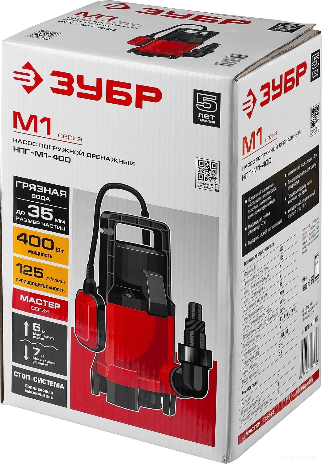 ПроизводителиНасос дренажный для грязной воды НПГ-М1-400 400 Вт ЗУБР