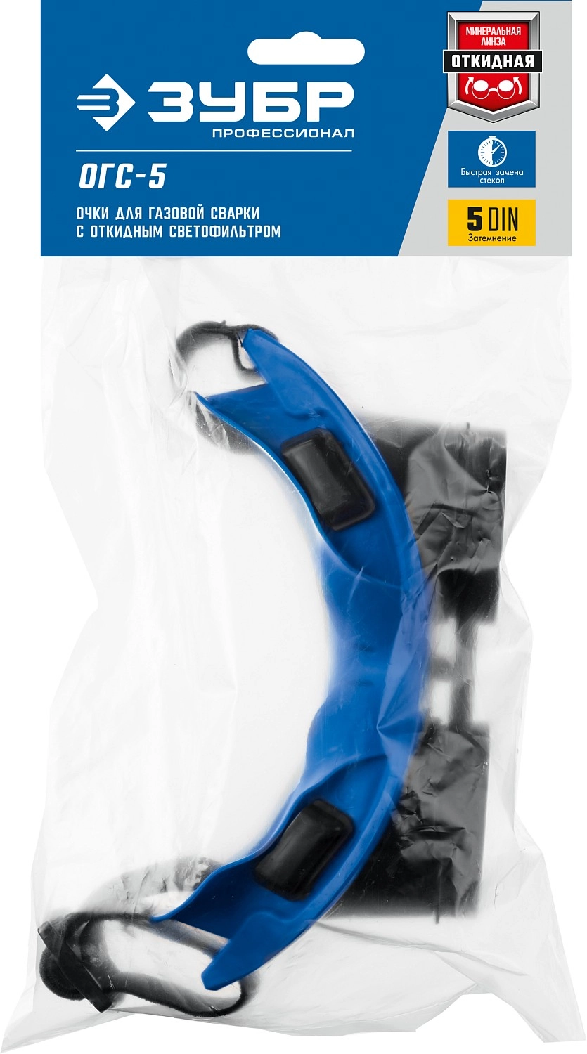 ПроизводителиОчки газосварщика, затемнение 5 DIN, с откидным блоком "ОГС-5" (1109) ЗУБР