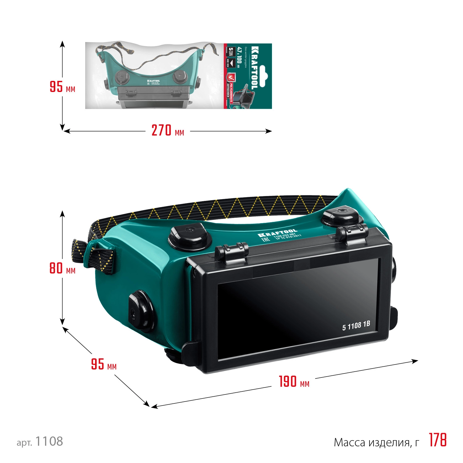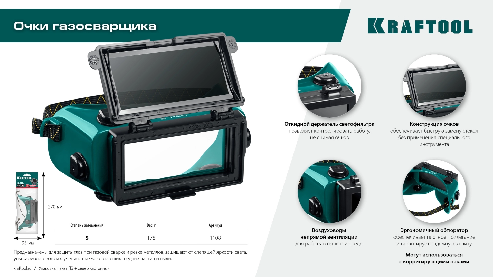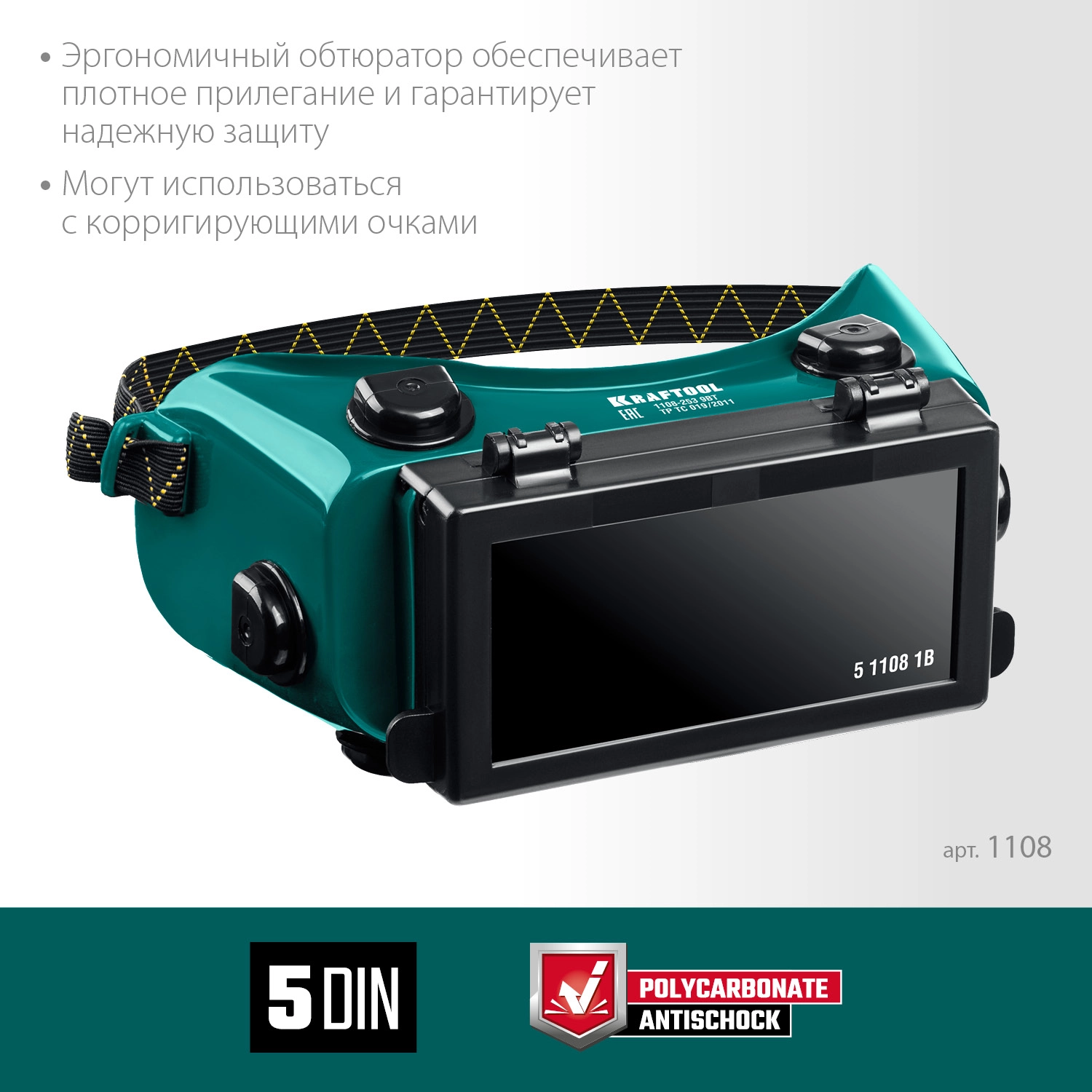 ПроизводителиОчки газосварщика, затемнение 5 DIN, с откидным блоком, панорамные (1108) KRAFTOOL