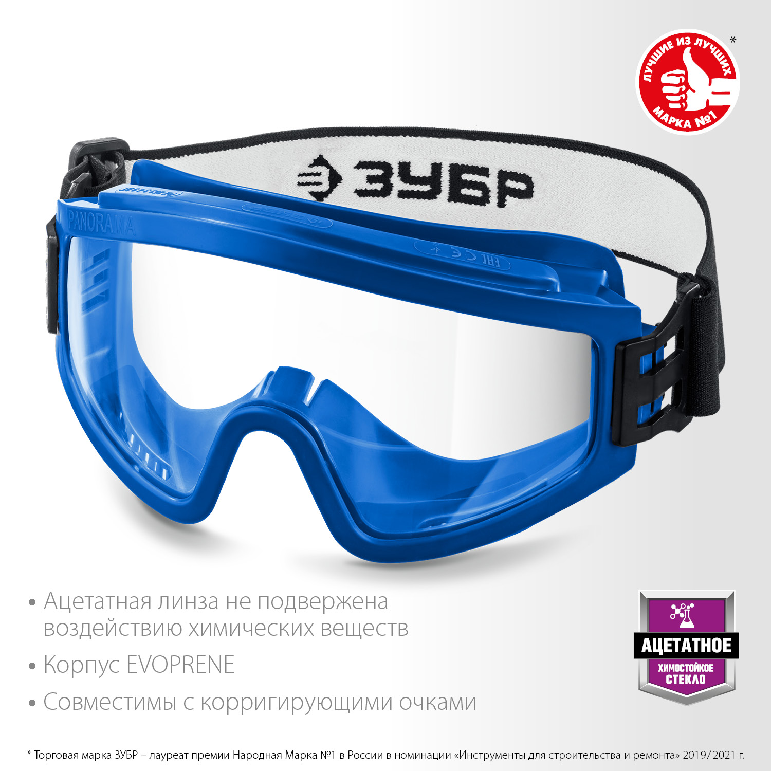 ПроизводителиОчки защит, с непрямой вентиляц.закрыт типа, хим. стой ацетат стекло, ПАНОРАМА ХС (110235_z01) ЗУБР